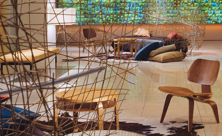 Designers Charles and Ray Eames established their long and legendary relationship with Herman Miller in 1946 with the boldly original molded plywood dining and lounge chairs.Designed to comfortably fit the body,the sculpted form of the molded plywood chairs are produced using thin sheets of lightweight veneer gently molded into curved shapes with natural rubber shock mounts to absorb movement.Since then,the chairs'aesthetic integrity, enduring charm,and comfort have earned it recognition as the best of modern design.Available in either a lounge or dining versions with chrome-plated steel or wood legs.