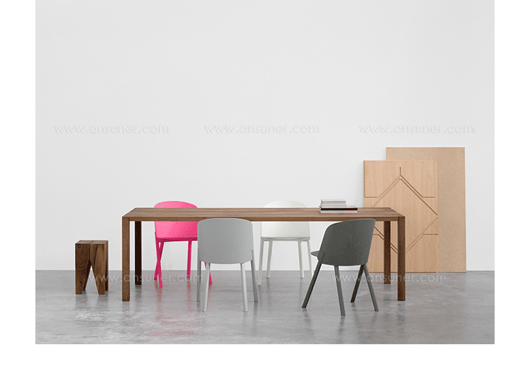 named after the famous card trick,THIS THAT OTHER seating series is made of robust and versatile molded oak-veneered plywood.Rounded shapes give way to modern spirit and rational details in distinct quality.With a streamlined construction,THIS side chair represents a very economical and appealing solution,especially for the contract market.