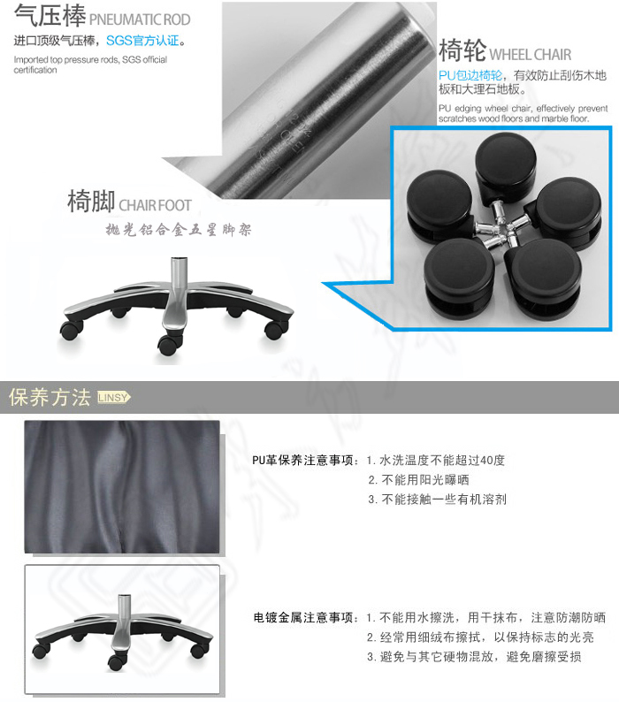 *多定位同步倾仰机构*高级抛光铝合金扶手*新款抛光铝合金五爪