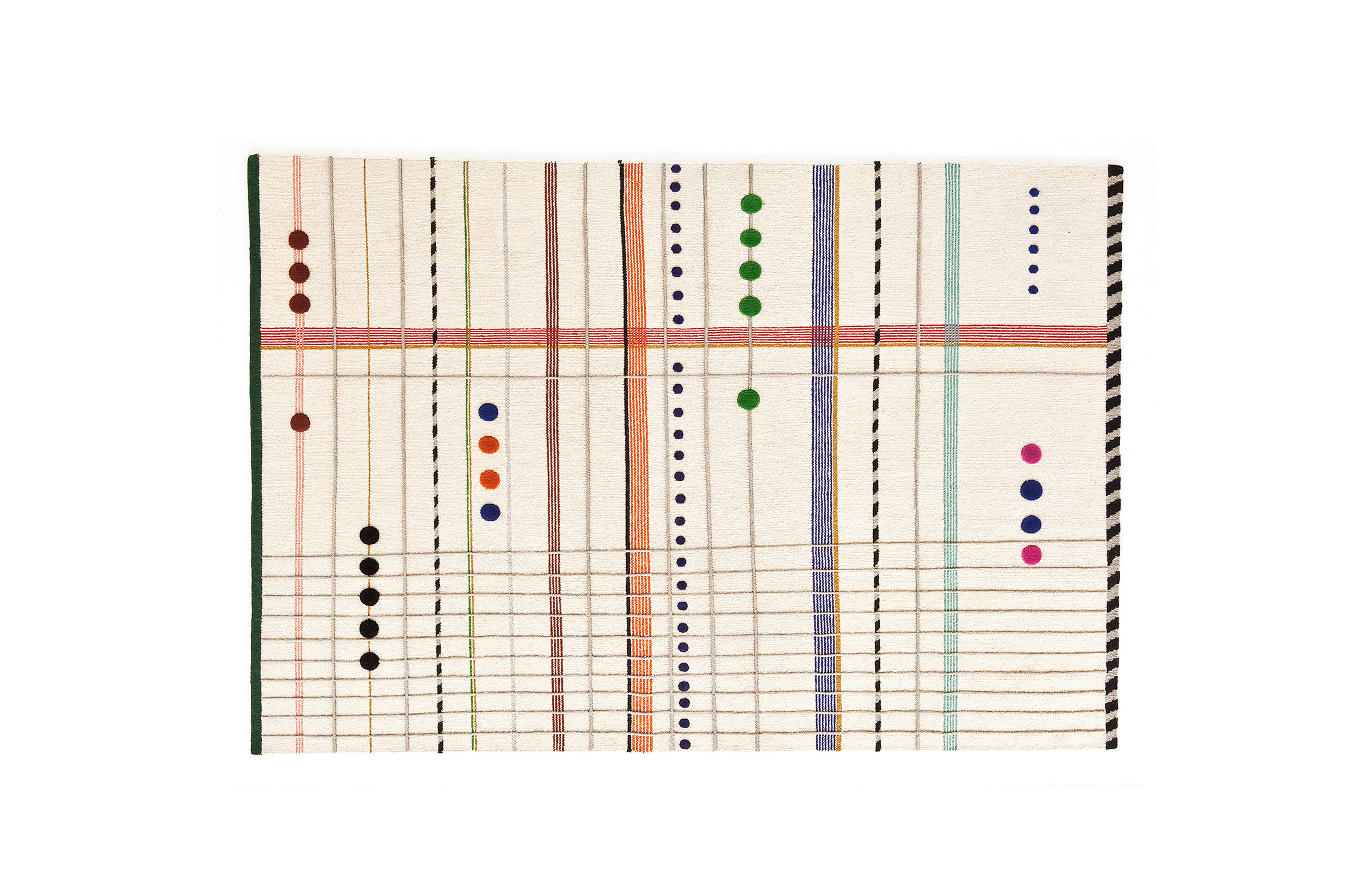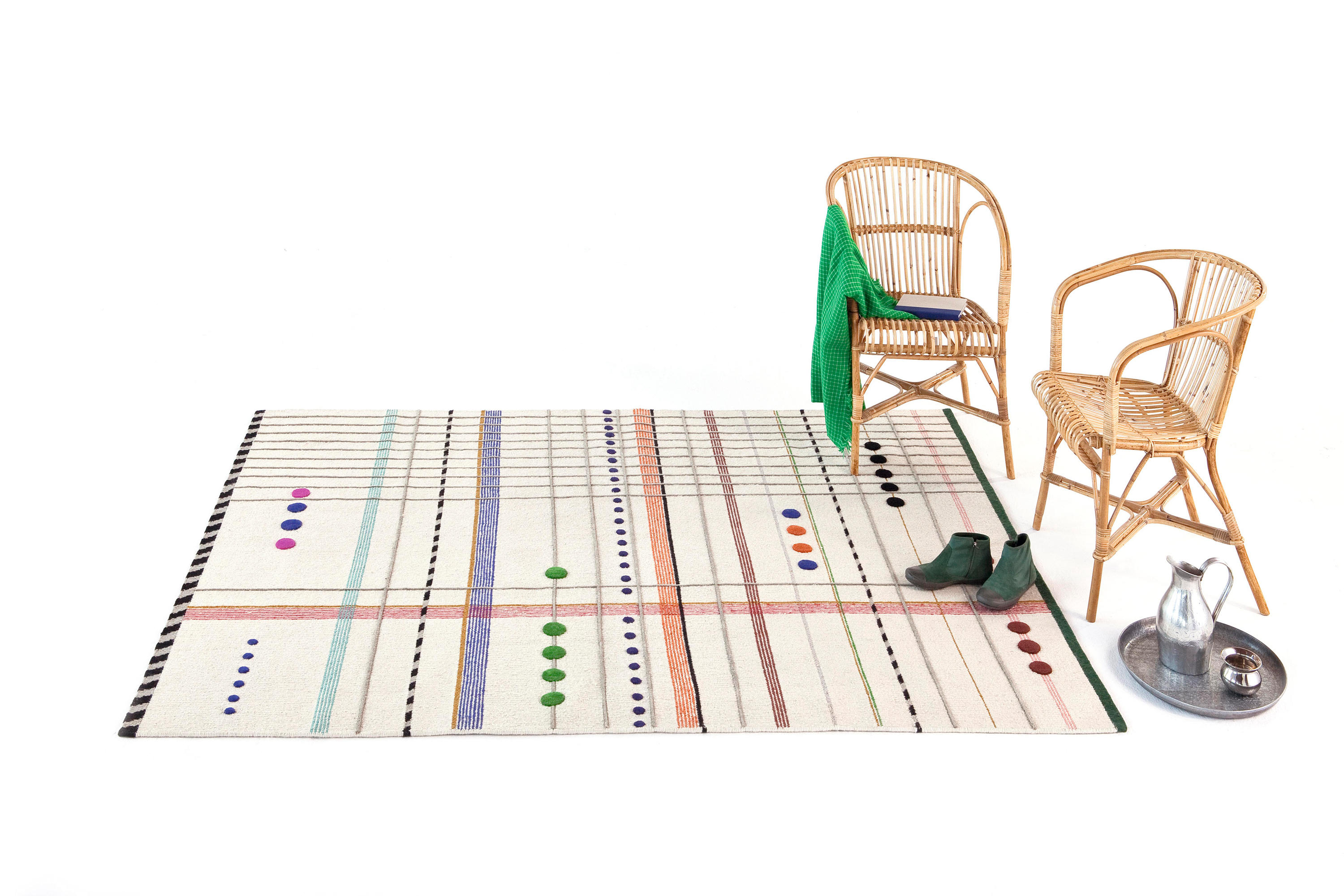 除了美丽的羊毛卷曲,Rabari有四个地毯(两个是米色的,一个是黑色的,一个是橄榄绿的),还有一个突出的设计,一幅Doshi Levien设计了一种精致的节奏和独特的视觉美感组合的画布。