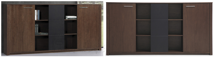 2. 基 材:E1级达欧洲环保标准基材(目前国内办公家具行业板式基材标准较高的),此基材用原木压缩颗粒成型,甲醛含量小于1.4MG/L,抗弯性能强,不易变形。