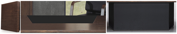 ※ 上图为稳重厚实的侧脚板展示:图上展示为中纤板贴木皮,开放漆工艺,精湛的做工! 仿皮桌面写字板:不同形状的仿皮写字板,给你提供舒适的办公环境,也可做活动写字板,需要的时候铺上, 不需要的时候拿下,皮革转角挡板,尽显高档与个性。