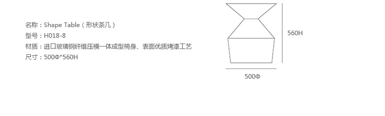形状是一张休闲桌,由两个不同的部分组成。凭借其强大的外观,它几乎像一个小雕塑,均衡的比例、有吸引力的光泽,它几乎成为一个让人疯狂的艺术品。无论是作为客厅里的一小张,还是两百张摆放在酒店里,它的形状、颜色都能与周围环境相得益彰。它由中密度纤维板表集合而成,手工上漆,达到高光泽度。