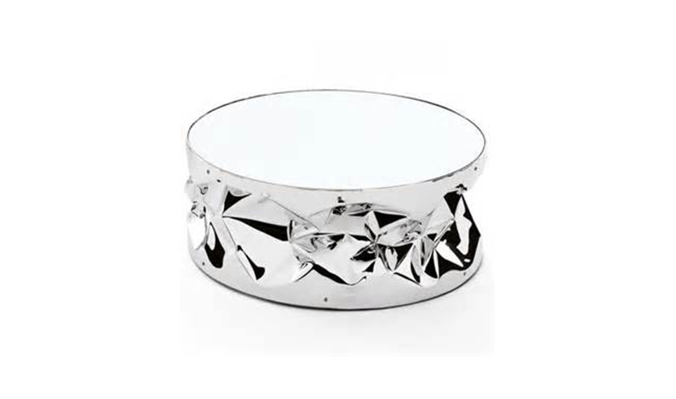 folded aluminium.The reflecting surface is presented INA singular.The coffee table
