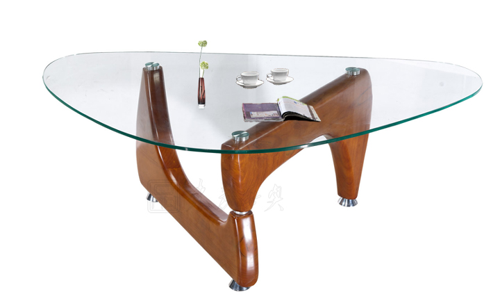 ※ 上图为透明玻璃不规则图形,搭配实木有形脚架,桌脚的独特设计款式,独具匠心的曲弧线条,简洁有效的表现出非凡风采。流畅的边线与内弧,美感与实用兼并。勾画出企业文化特质的轮廓,体现了简约的设计观念。