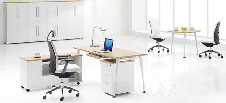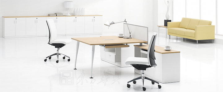 ※ 别致的桌面线条配以纯白圆形钢铁柱脚或板脚,彰显个人品味。个人配套包括边桌、流动抽屉柜、前档板、高柜、矮柜等使台子更瑧完美。
