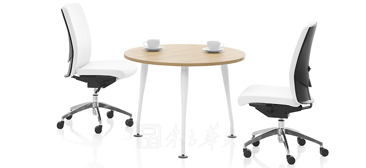※ 上图为小型圆形洽谈桌,适合领导洽谈需要,防火胶板的桌面,多种颜色可供选择,满足不同行政人员的个人品味要求。