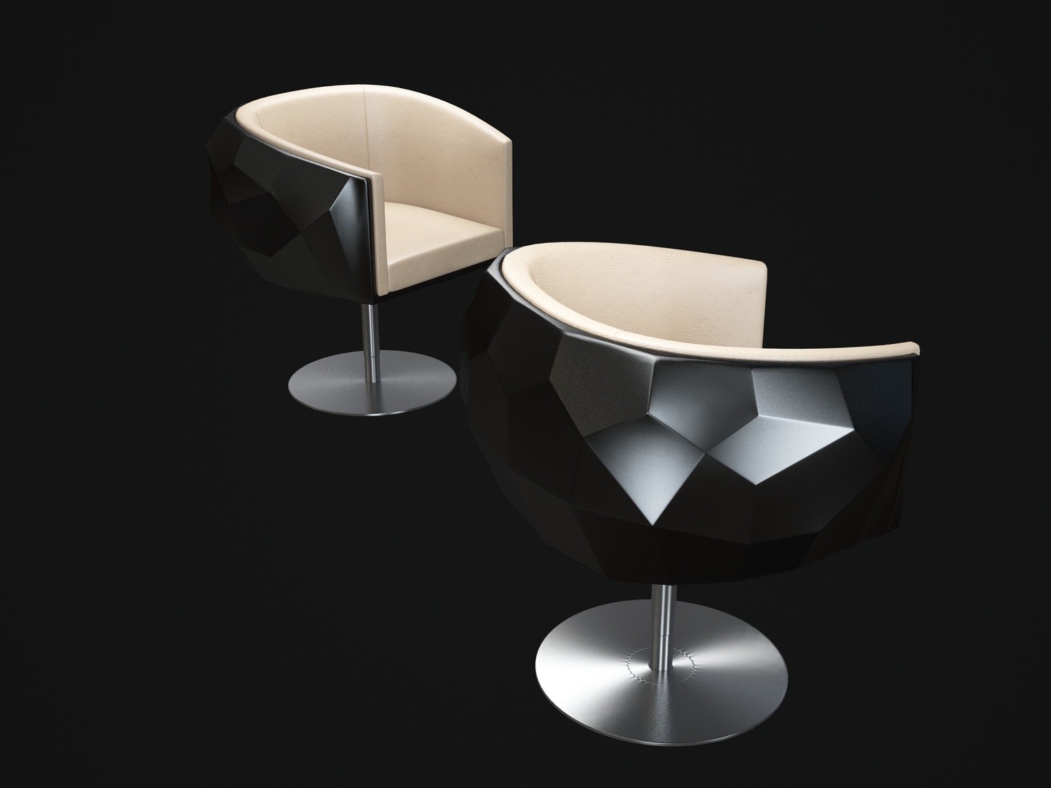 豪华座垫可在皮革或织物色调与您的内部。椅子放在金属底座上,有各种各样的饰面,如镀铬。无缝漆聚氨酯外壳有黑色、象牙、铂、银和一些变化的坐垫和金属底座.