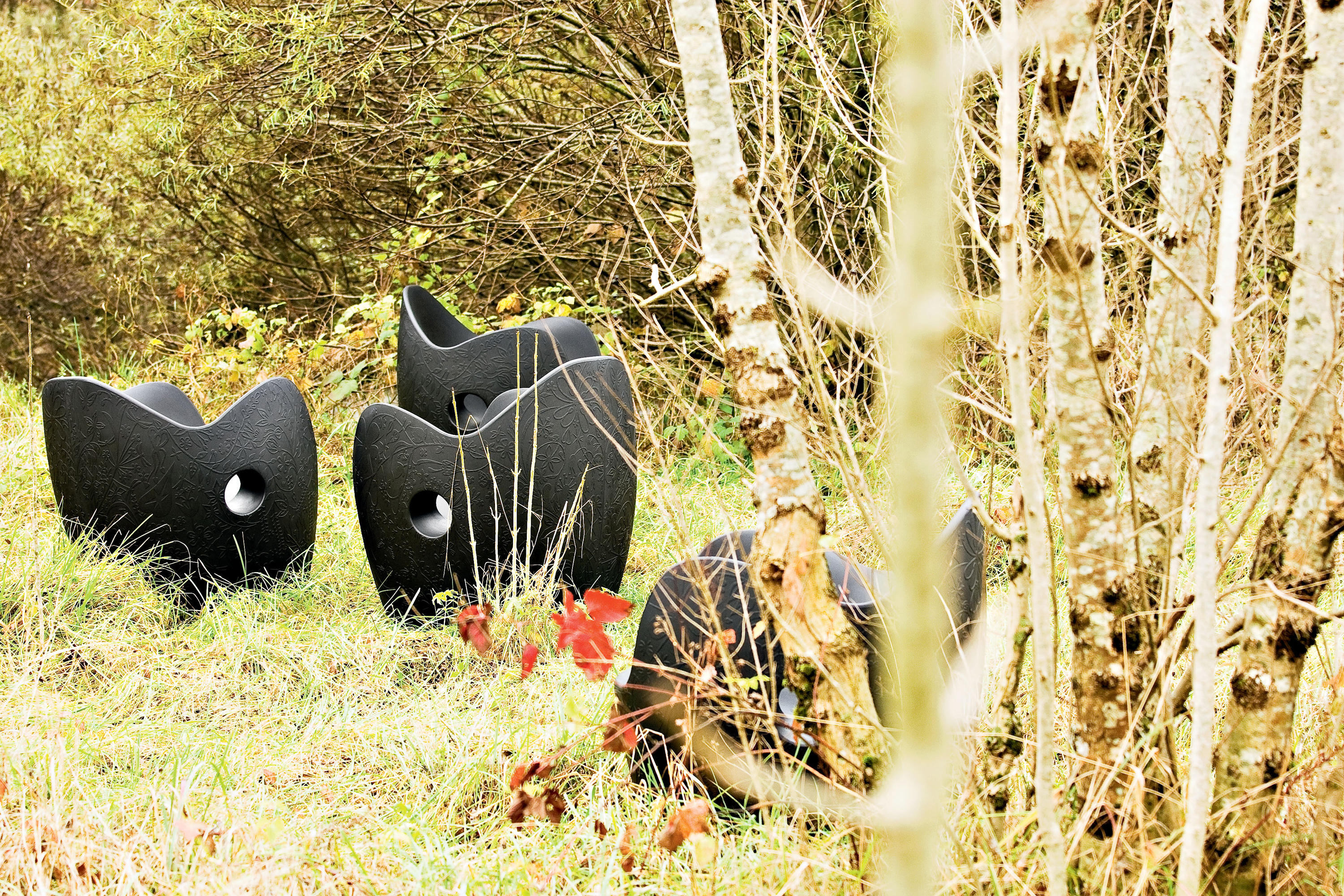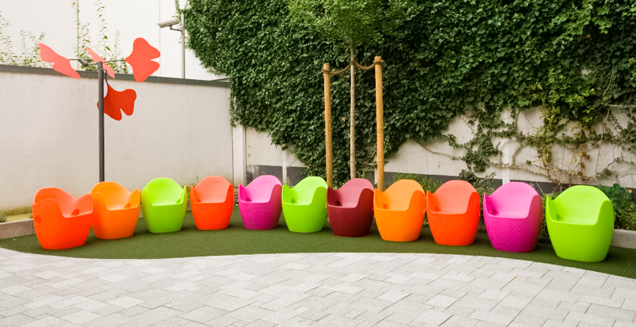目标功能性家具无论在室内还是室外使用,O-Nest都是一种发光体,在某种程度上是变化的,可以被放置在不同的环境下:居住空间,办公室,图书馆,医院,幼儿园和学校。从远处看,有一种强烈的、前后一致的画面,显示出理性的和塑料的植物,用颜色强调“超现代”的方面,如果近距离拍摄,带有花卉图案的浮雕装饰将它变成一个开花的灌木,在一个温暖舒适的巢穴里。