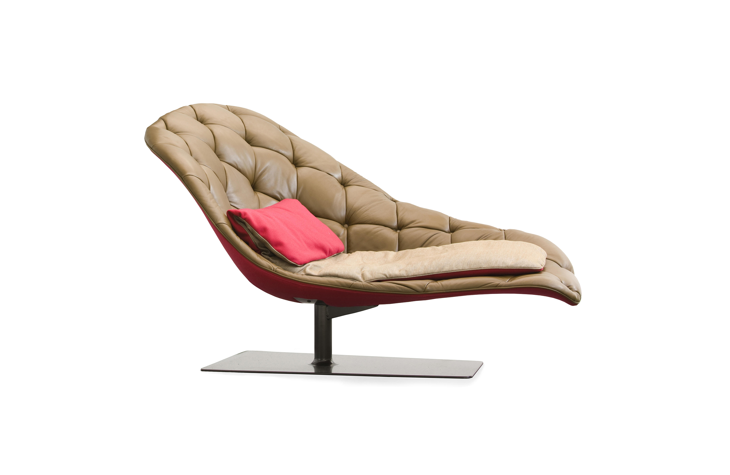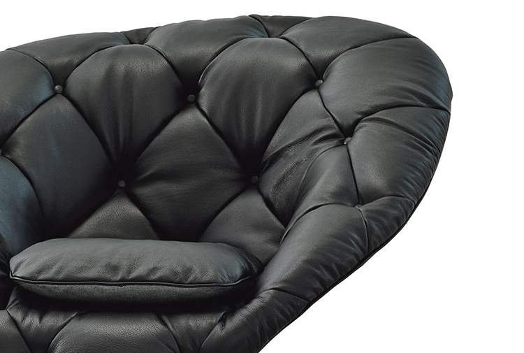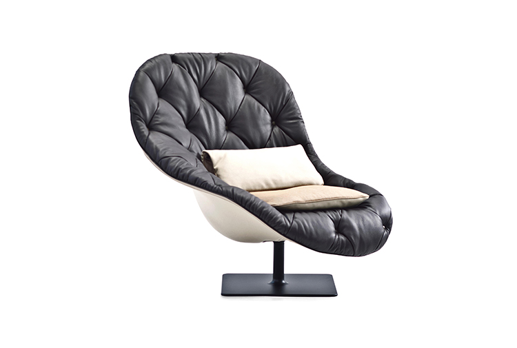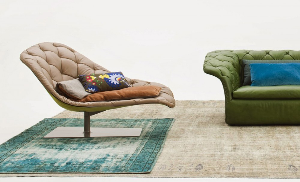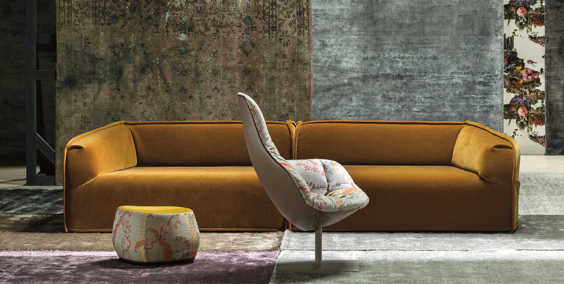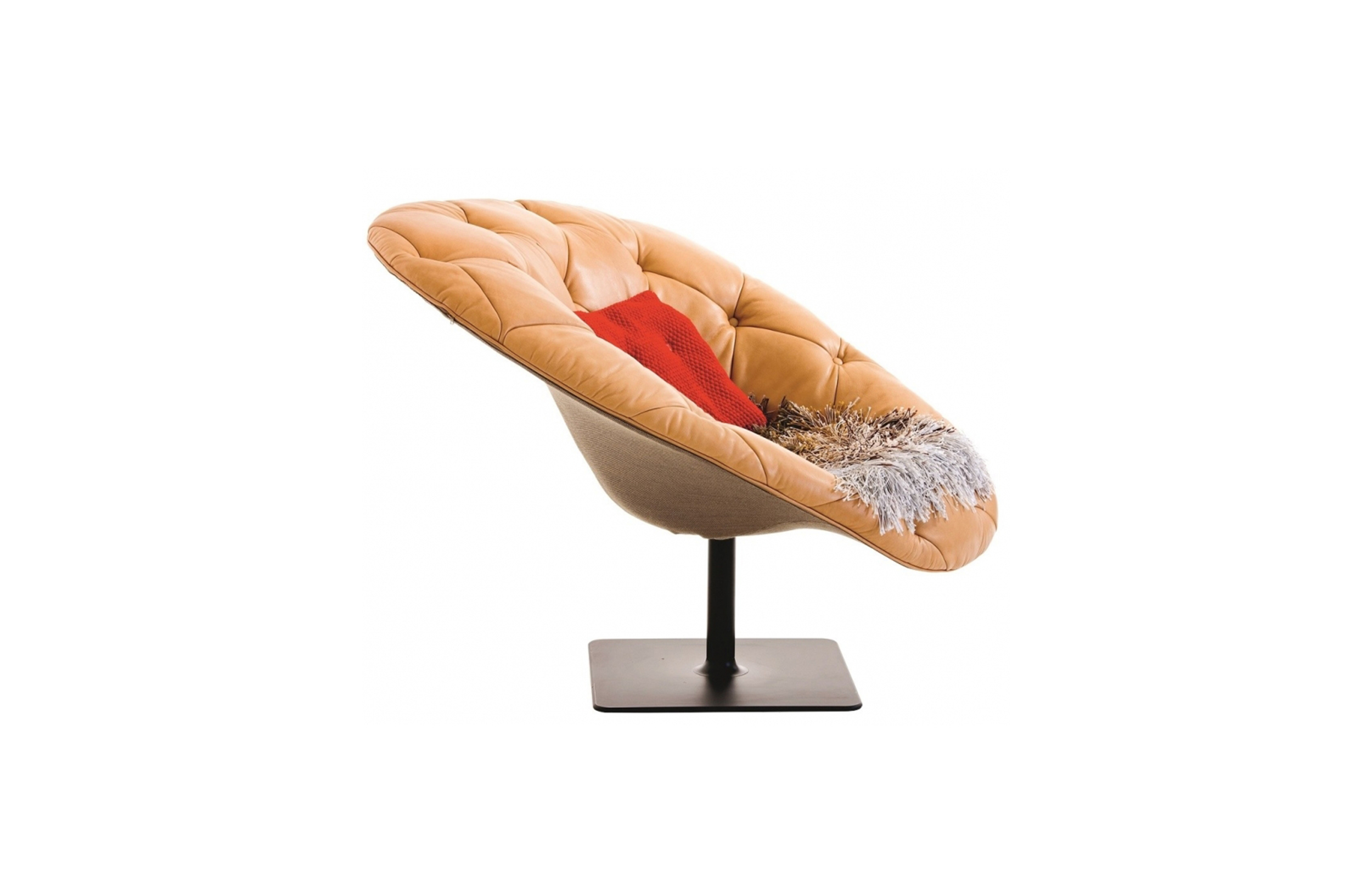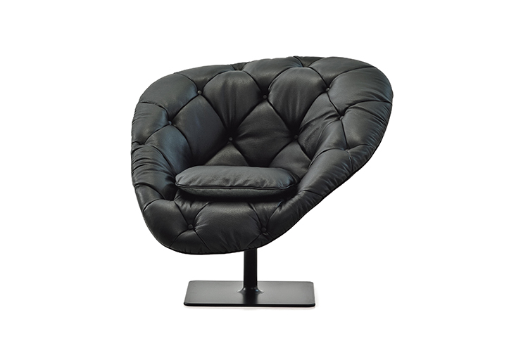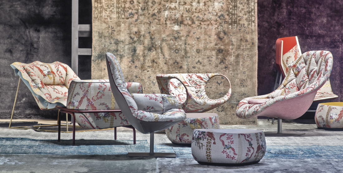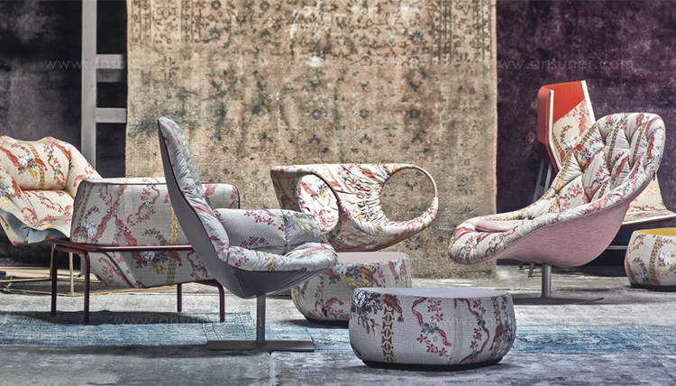 帕特丽夏·厄奎奥拉采用的是一种全新的旋转方式,革命性地改变了这一概念,她设计了一系列的产品,这些产品的形状看起来是液态的,就好像它们在框架上融化一样,以制造柔软的,舒适的,几乎随意的线条,这些布料和皮革都用按钉固定在外壳上。这些碎片似乎披着披在肩上的披巾,座椅上有各种重叠的软垫:几乎是对其覆盖层的设计、层叠的皮革和其他材料、颜色和面料类型的关注。这是一种奢侈的拼贴,当它穿过时,就会给人一种游牧式的全球精神。