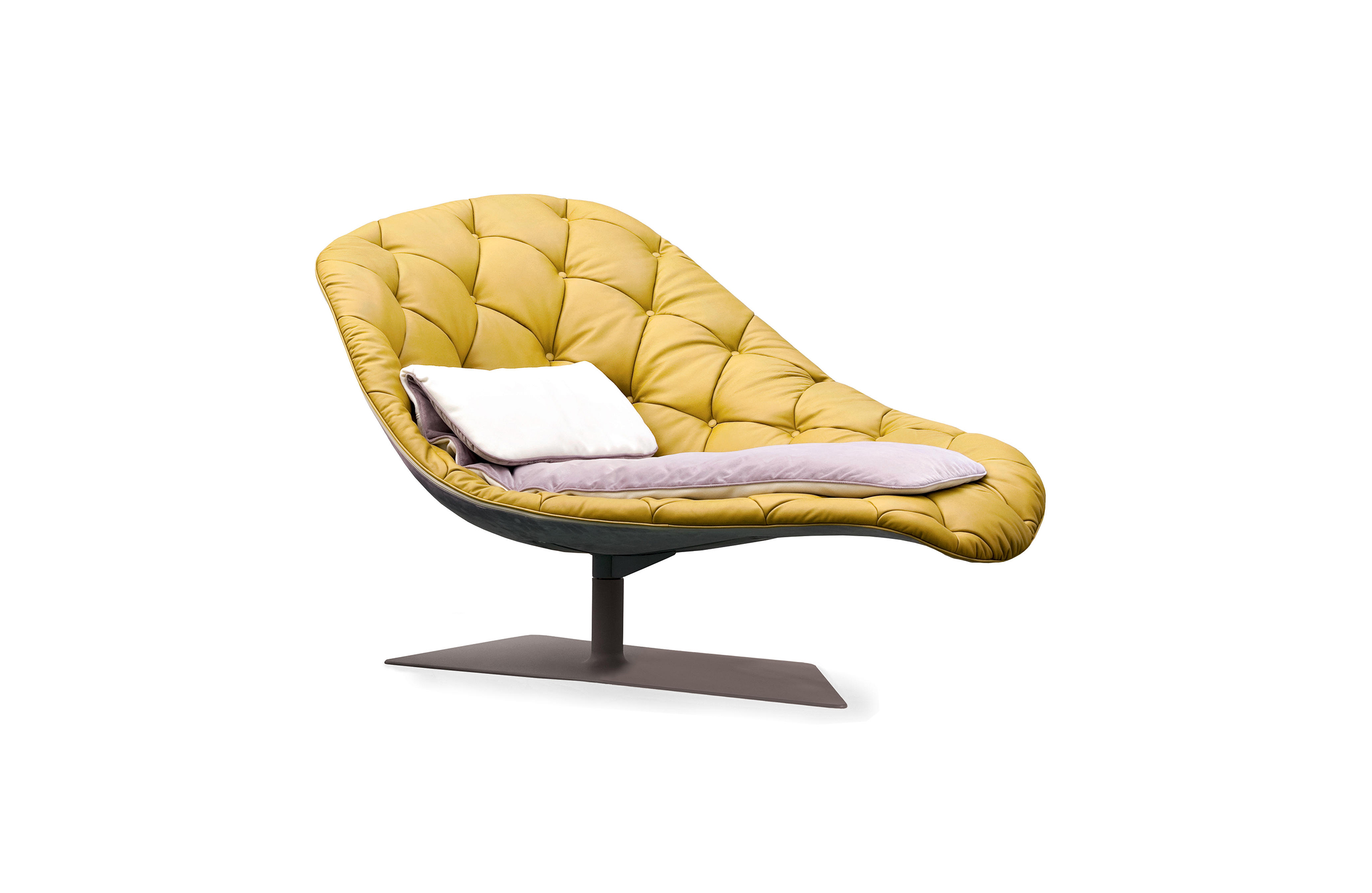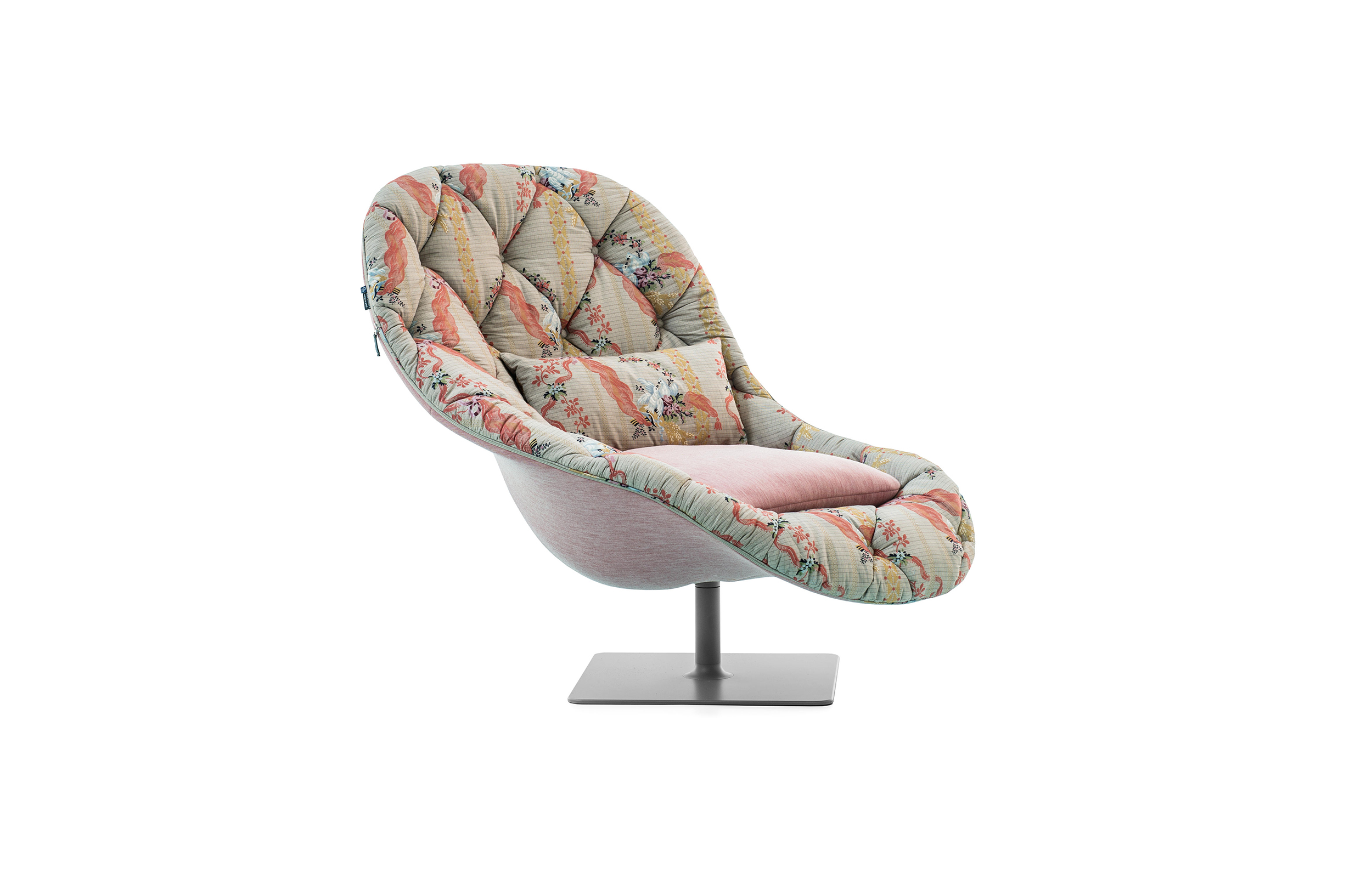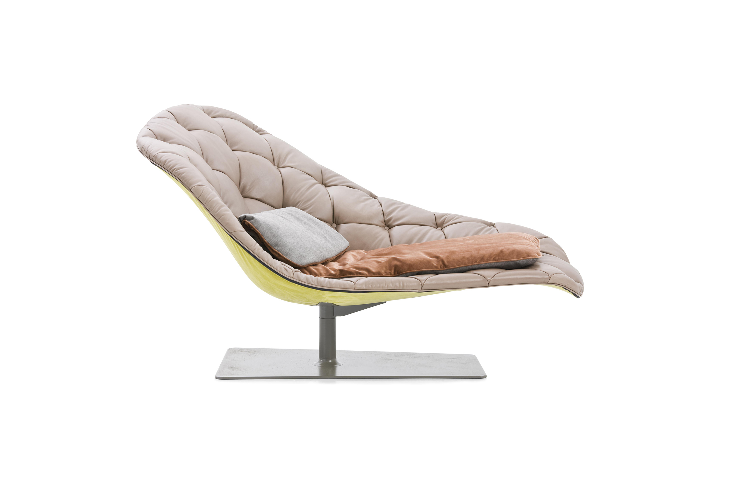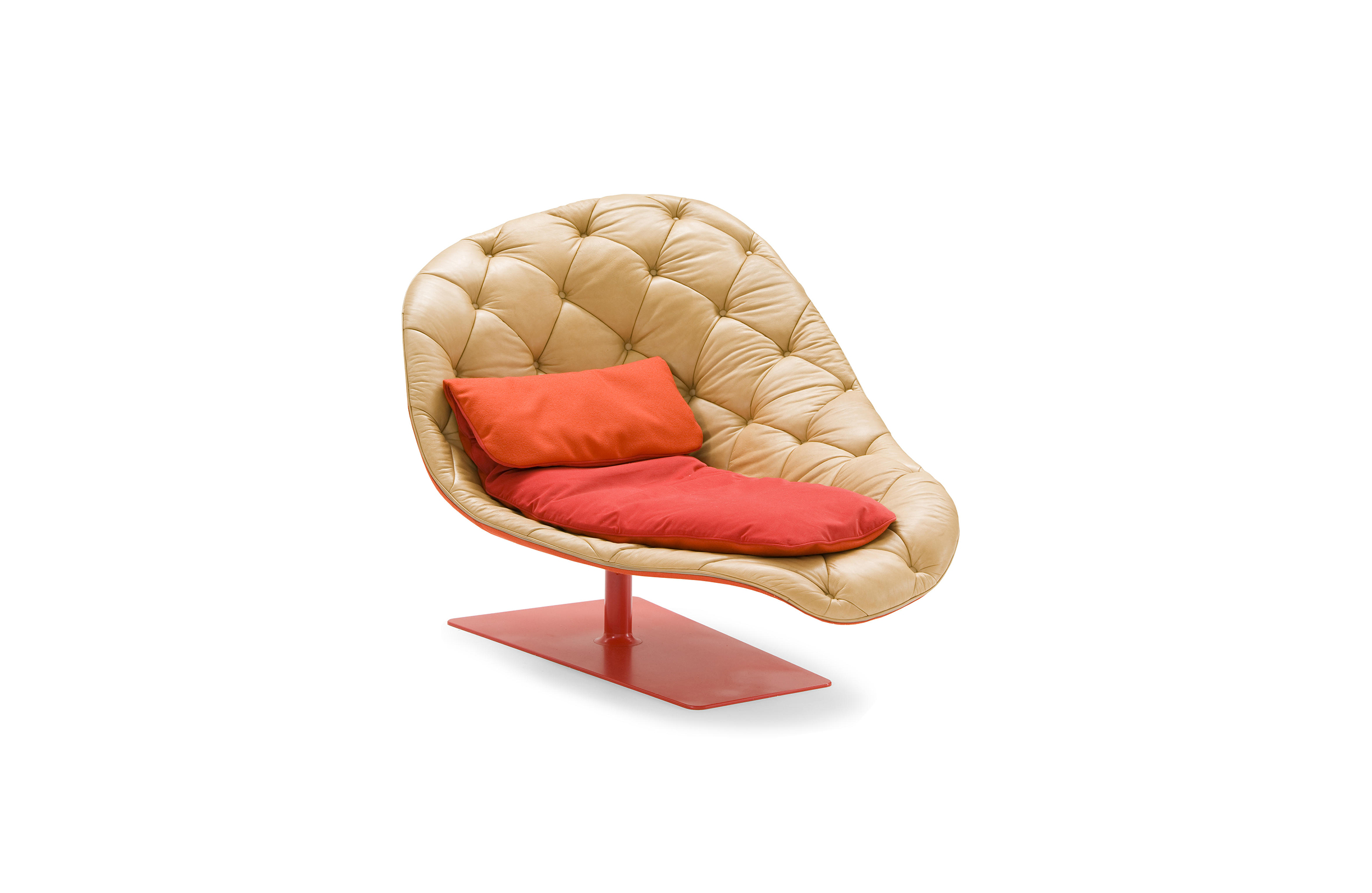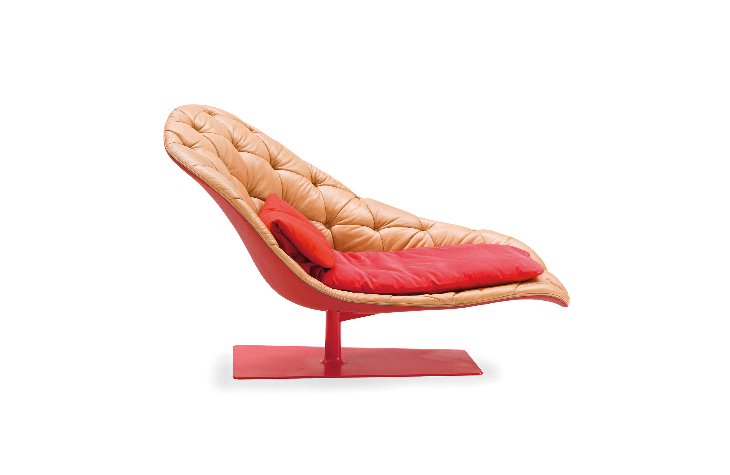 帕特丽夏·厄奎奥拉采用的是一种全新的旋转方式,革命性地改变了这一概念,她设计了一系列的产品,这些产品的形状看起来是液态的,就好像它们在框架上融化一样,以制造柔软的,舒适的,几乎随意的线条,这些布料和皮革都用按钉固定在外壳上。这些碎片似乎披着披在肩上的披巾,座椅上有各种重叠的软垫:几乎是对其覆盖层的设计、层叠的皮革和其他材料、颜色和面料类型的关注。这是一种奢侈的拼贴,当它穿过时,就会给人一种游牧式的全球精神。