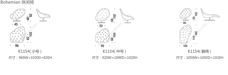 Bohemian 休闲椅 系列尺寸/示意图