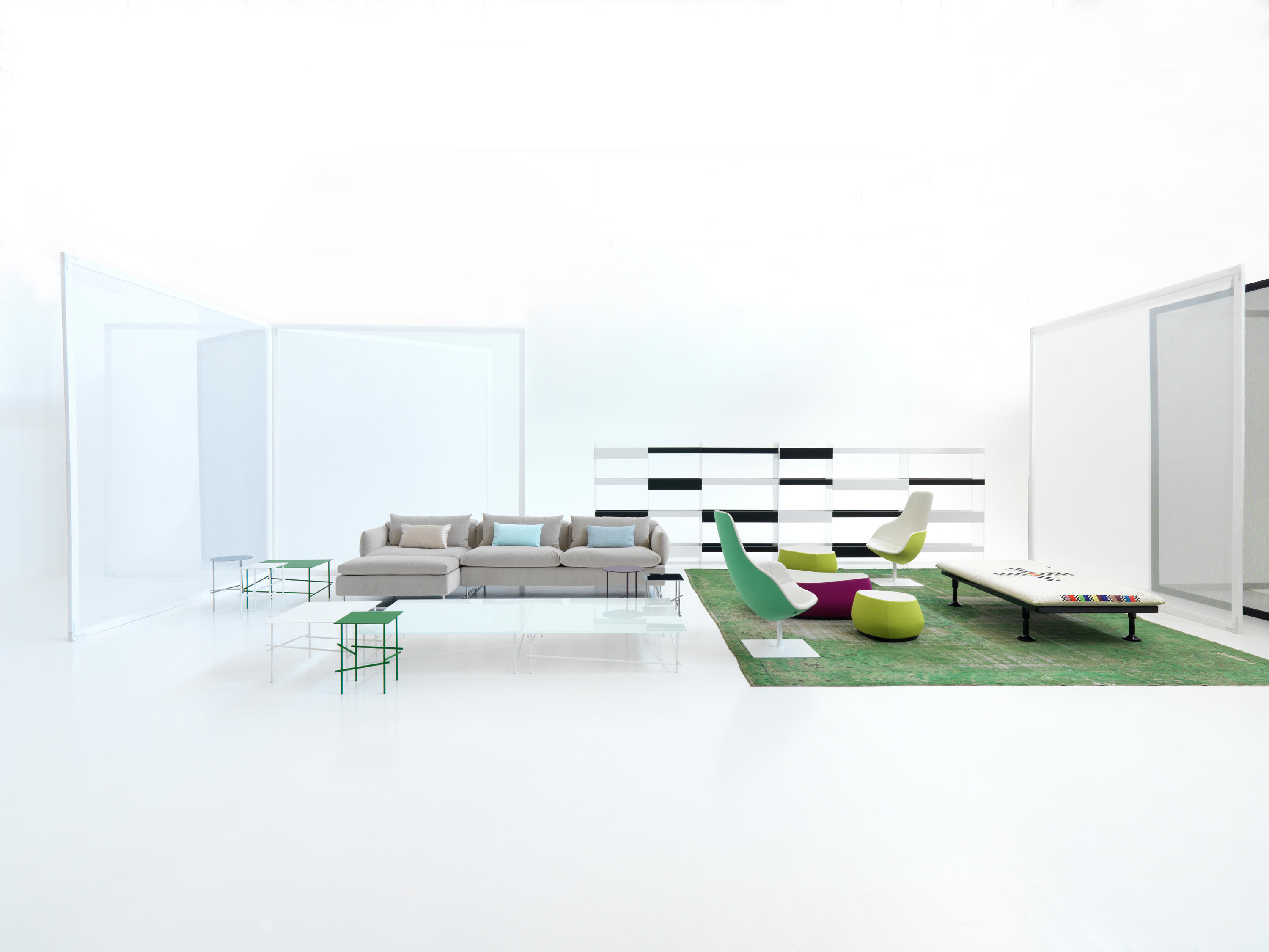 精致而舒适,低调奢华,略带东方风情。在标准位置时简单、最小;当靠背有倾斜的机制时,超级舒适。彩钢或黑色的彩管腿让人联想到用来演奏米卡多(或称“上海”意大利语)的彩色木棒。舒适是一种内在的特性,它是通过在干净的、中性的色调中舒适地垫在座椅靠垫上实现的,这种色调与在梅花、翠绿、红辣椒和漆红色中所提供的洒垫和涂漆的边桌所提供的色彩形成了完美的对比。