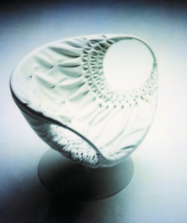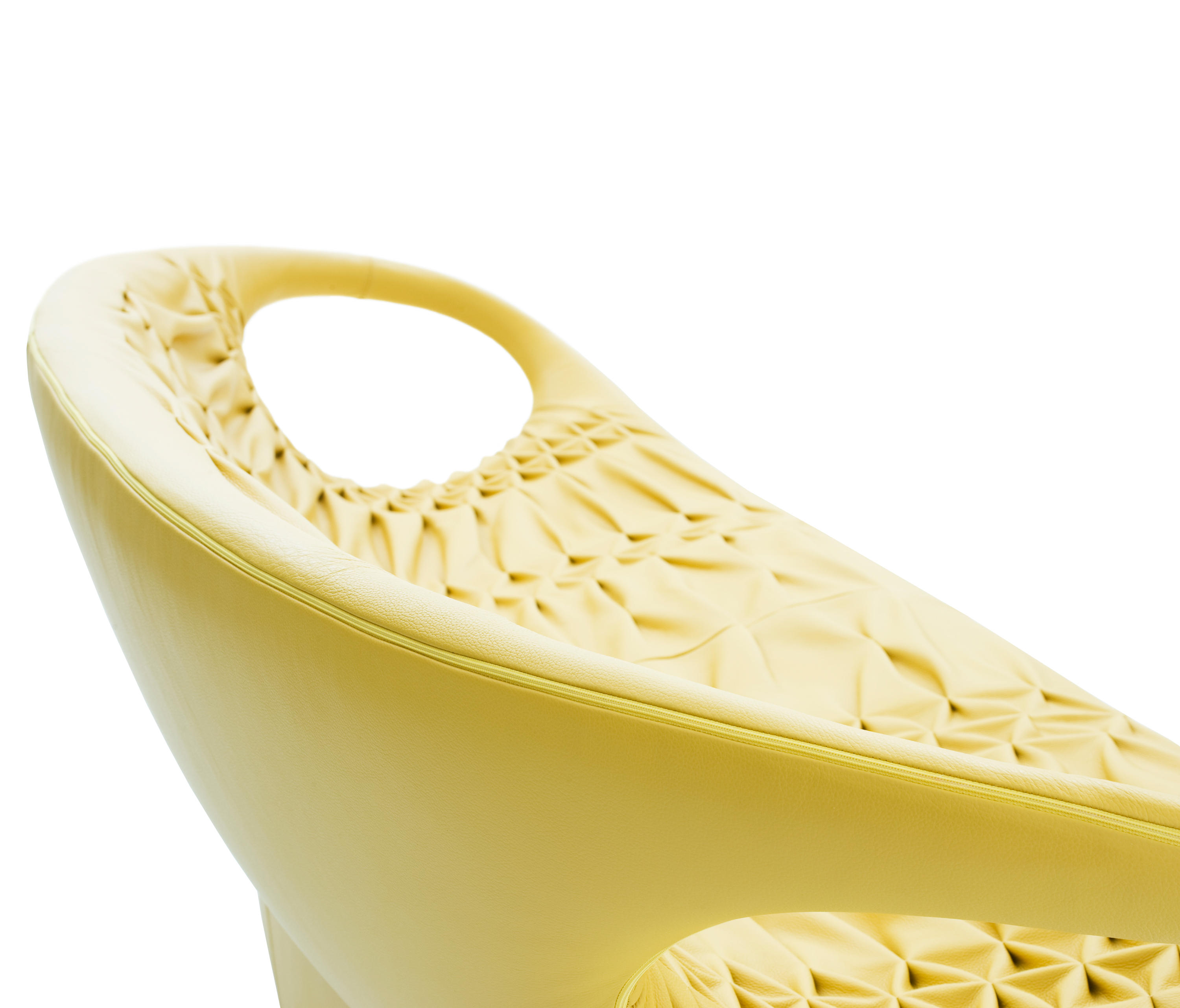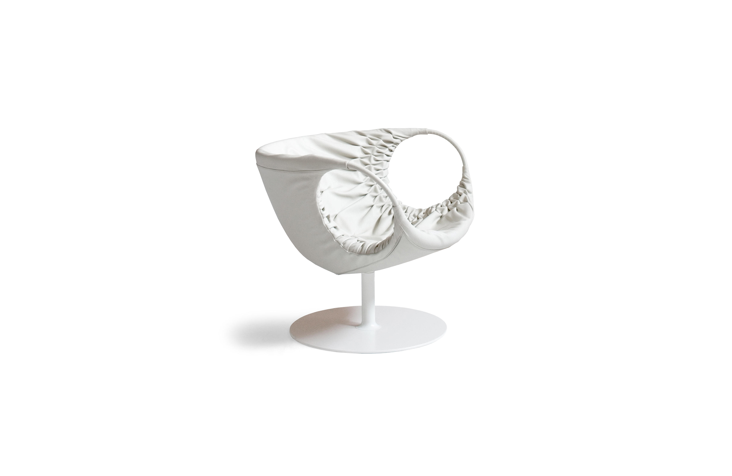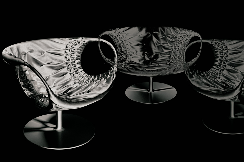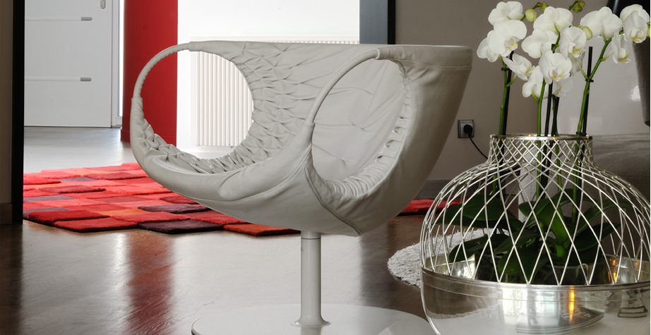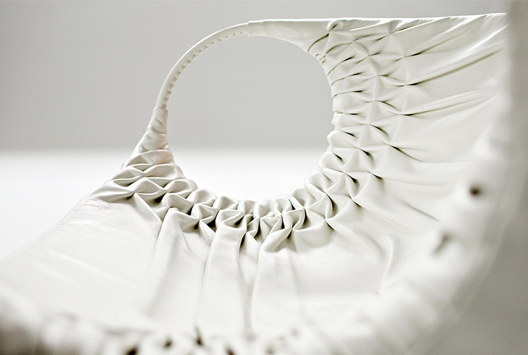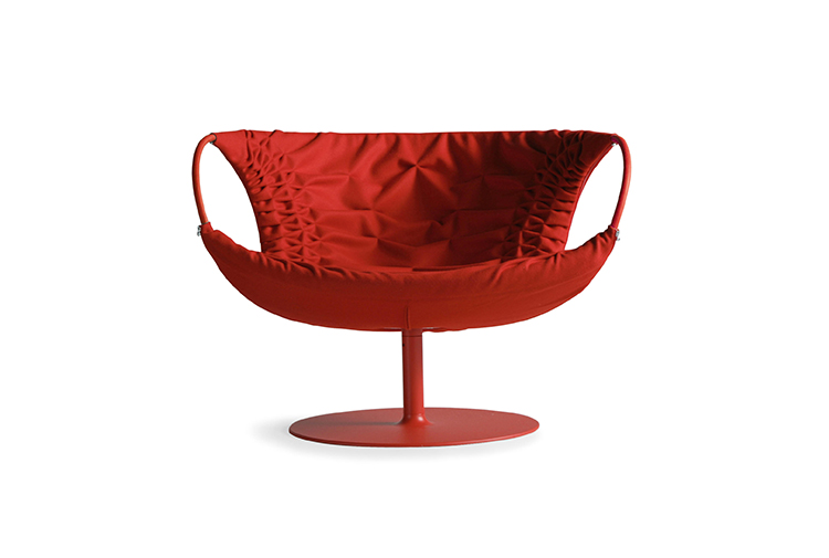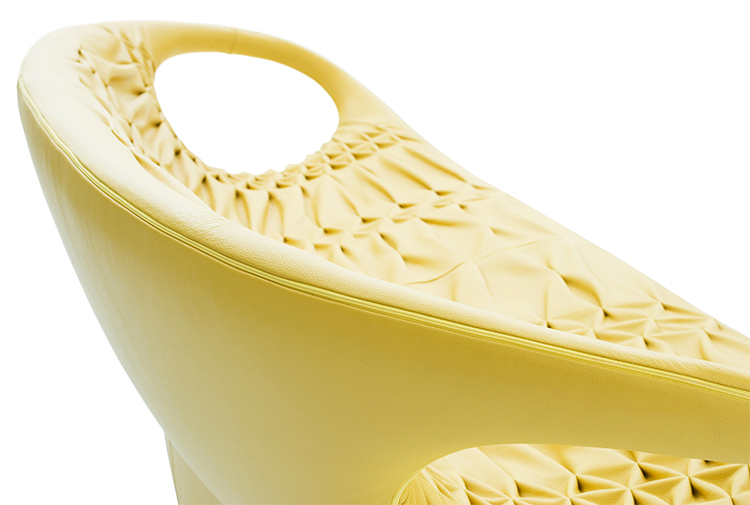 采用经典的刺绣花样,再将它翻过来。将工艺和工业加工结合起来,扩大想象力,创造出一种时尚的、精致的作品,融入到具有象征意义的女性世界中。展开它。两个环变成了扶手,类似于一个竹袋的简单风格;它的外壳有一种棒球手套的感觉,它是一个敞开的,随时可以进入的,舒适的安乐窝。边绣——在抽丝针的针法——使悬垂的现代风格呈现出来,给形体带来一种轻盈,给椅子带来一种经典时尚配饰的优雅和精致。