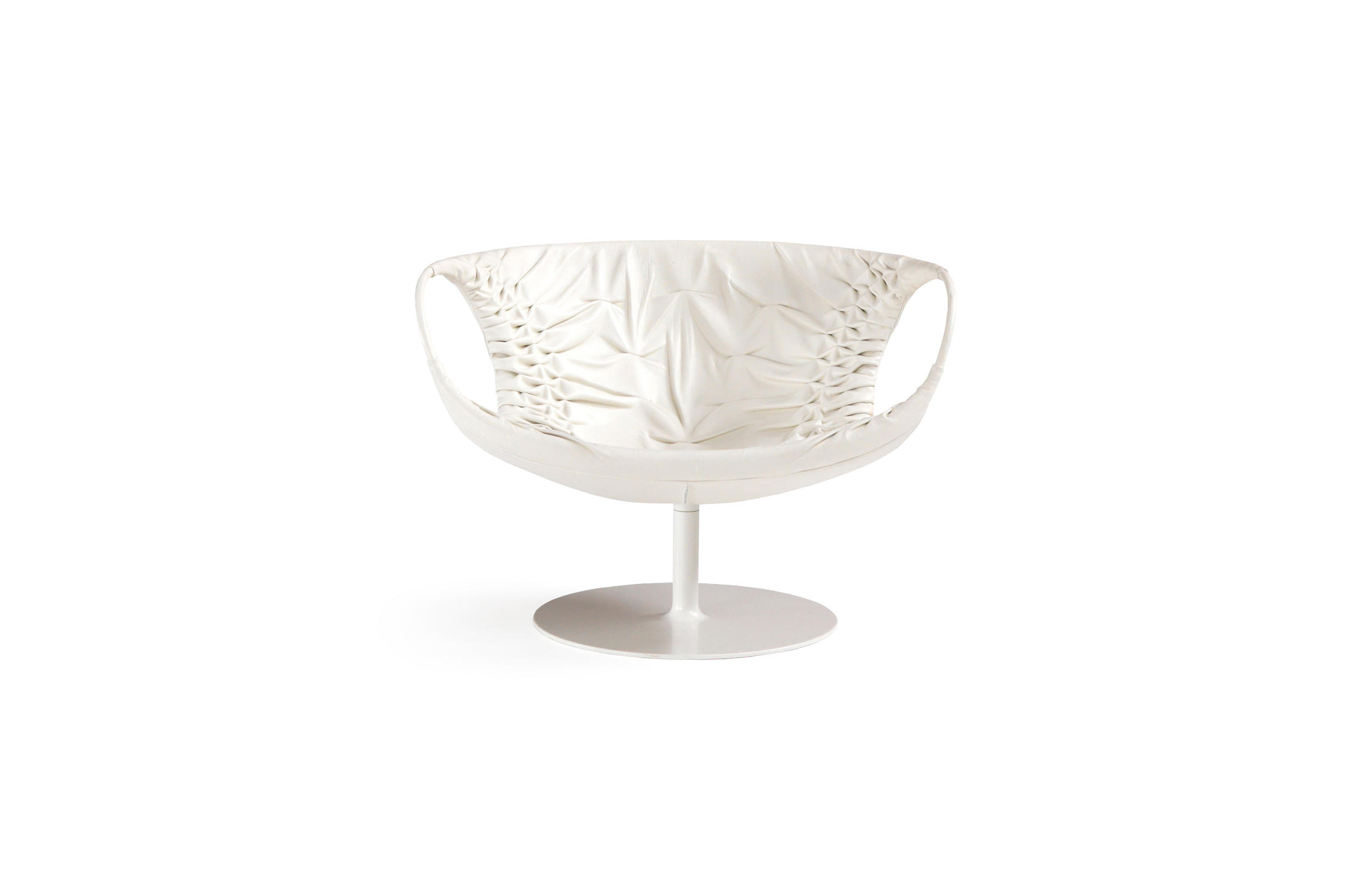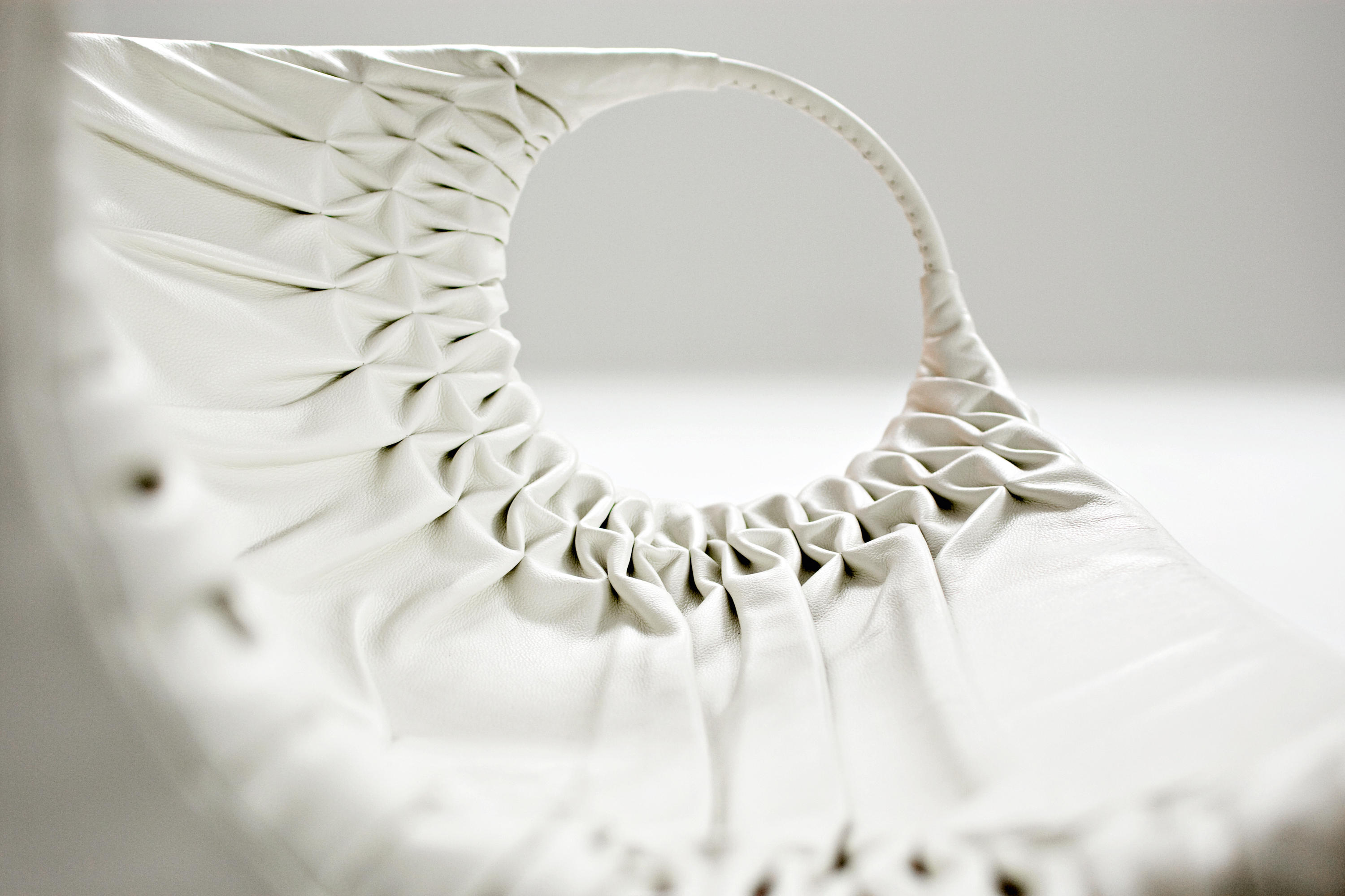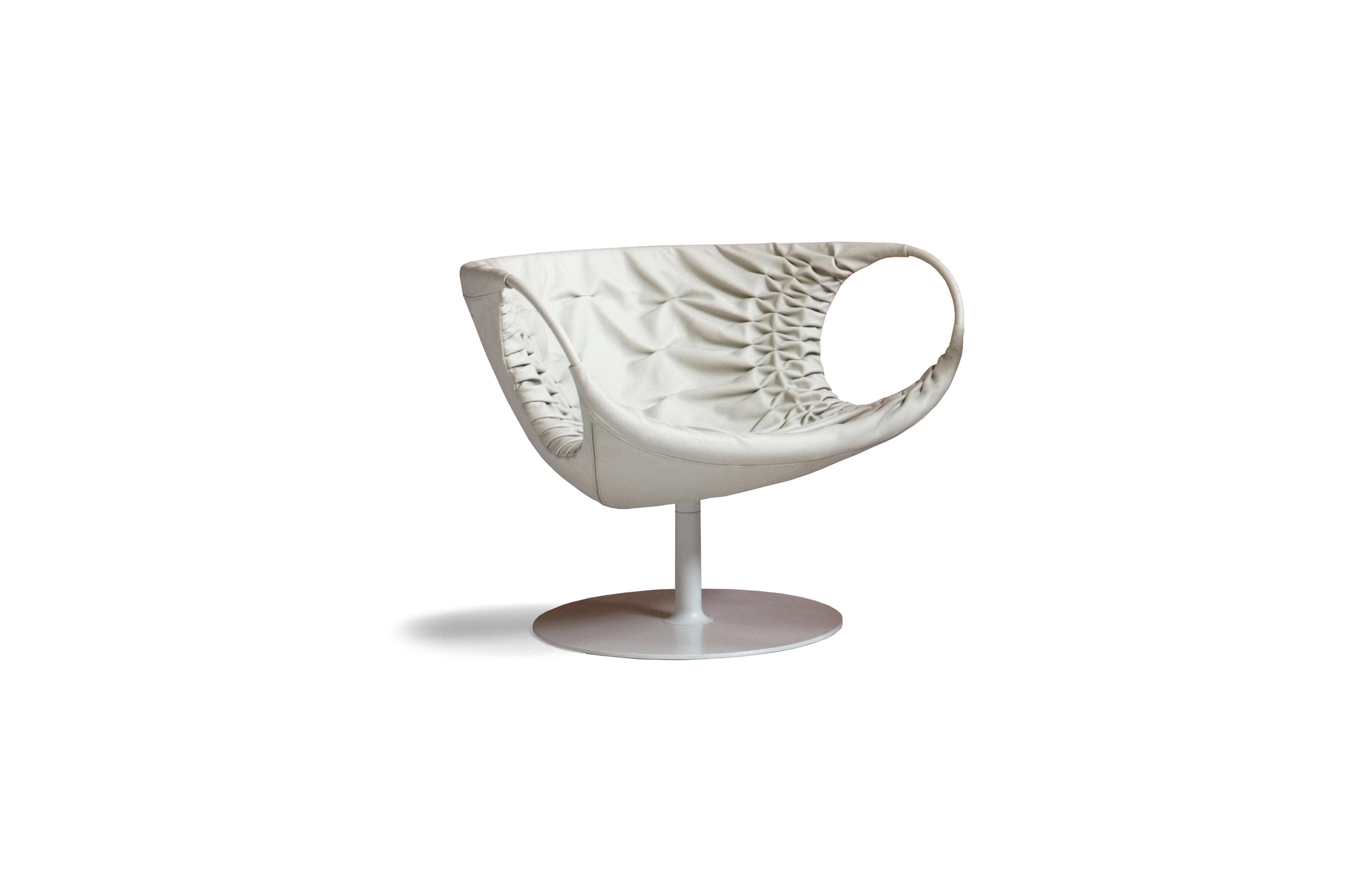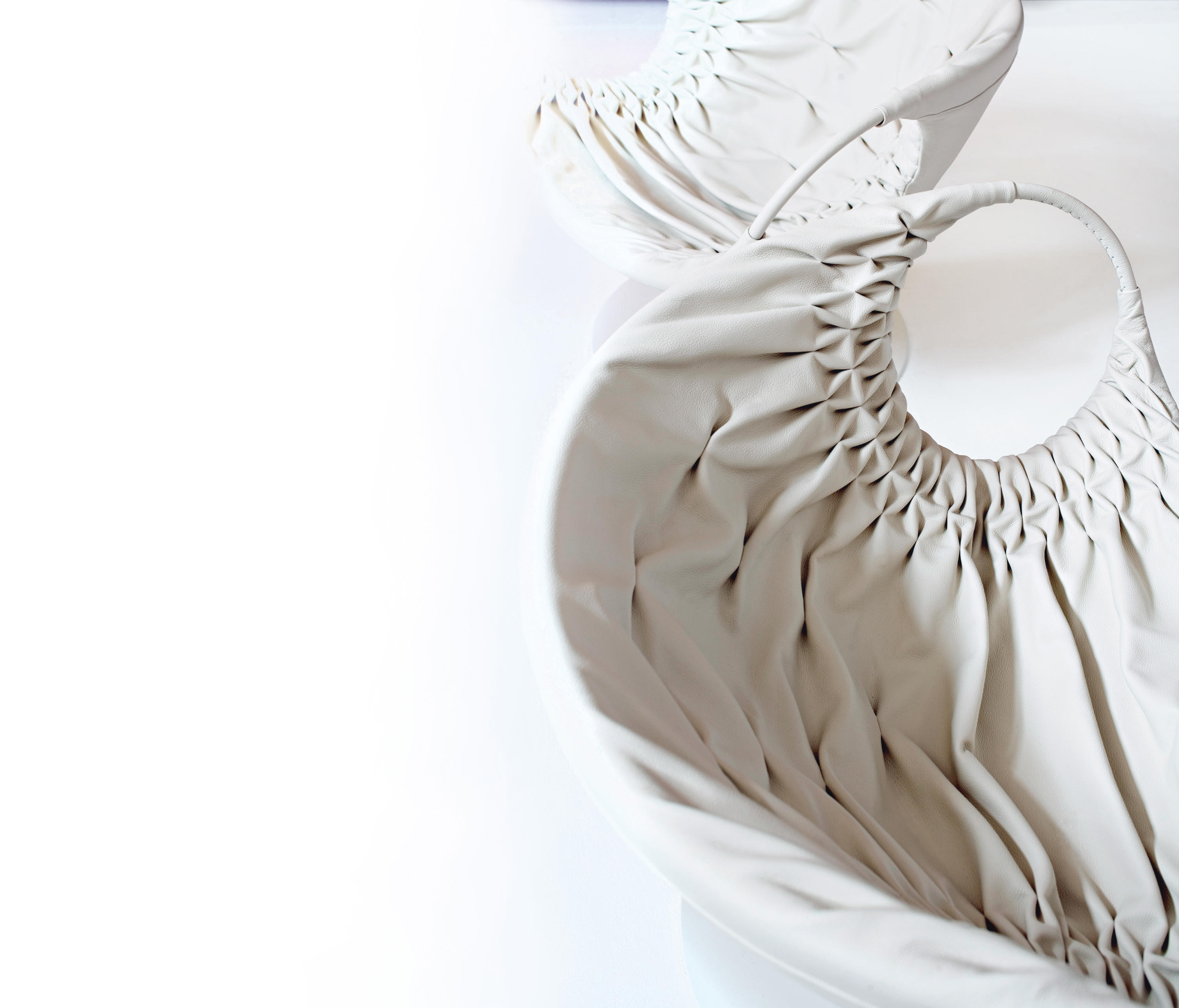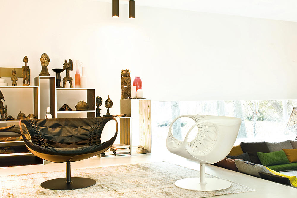 采用经典的刺绣花样,再将它翻过来。将工艺和工业加工结合起来,扩大想象力,创造出一种时尚的、精致的作品,融入到具有象征意义的女性世界中。展开它。两个环变成了扶手,类似于一个竹袋的简单风格;它的外壳有一种棒球手套的感觉,它是一个敞开的,随时可以进入的,舒适的安乐窝。边绣——在抽丝针的针法——使悬垂的现代风格呈现出来,给形体带来一种轻盈,给椅子带来一种经典时尚配饰的优雅和精致。