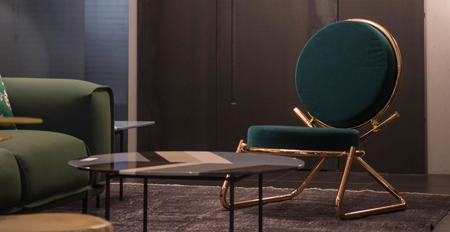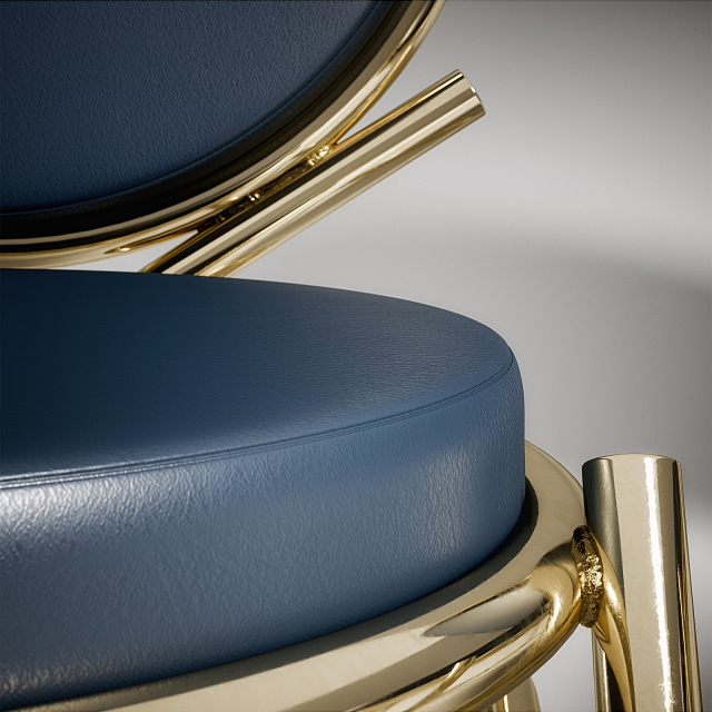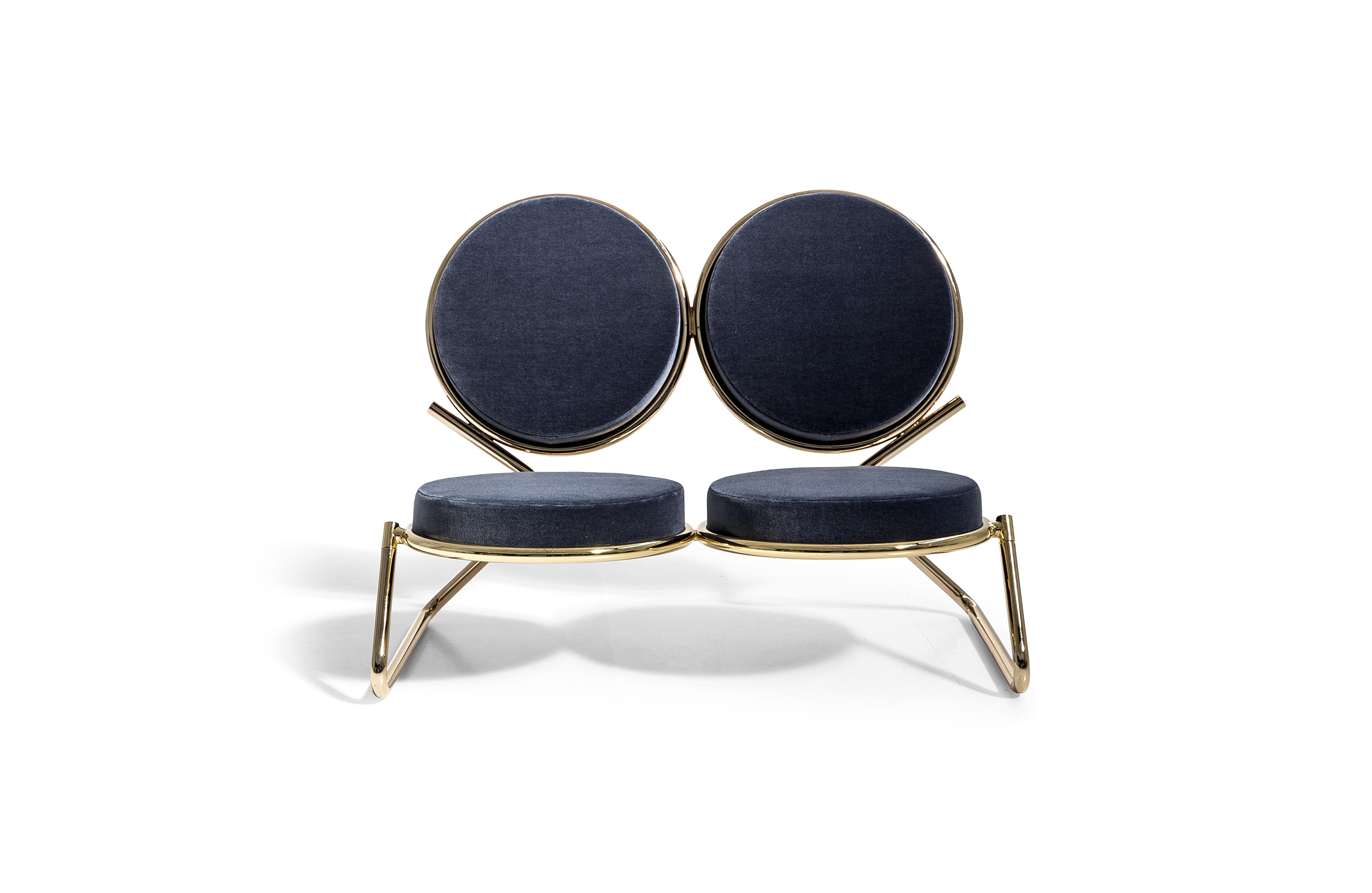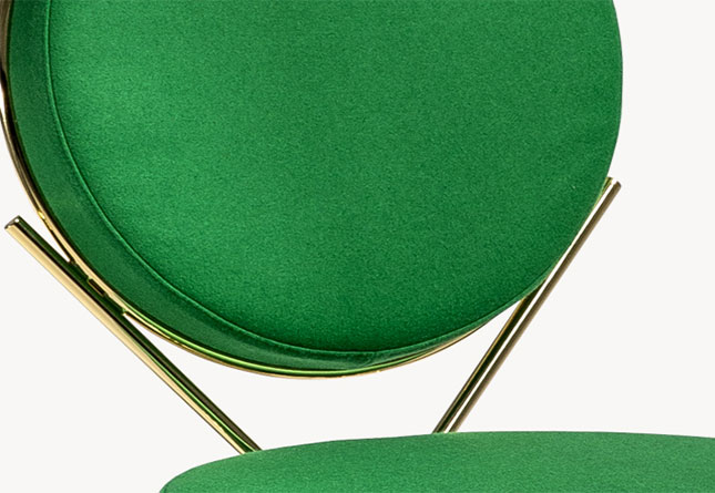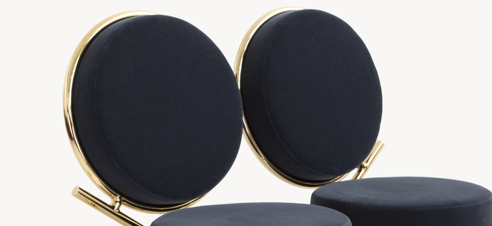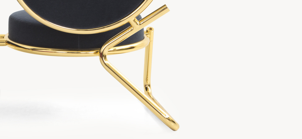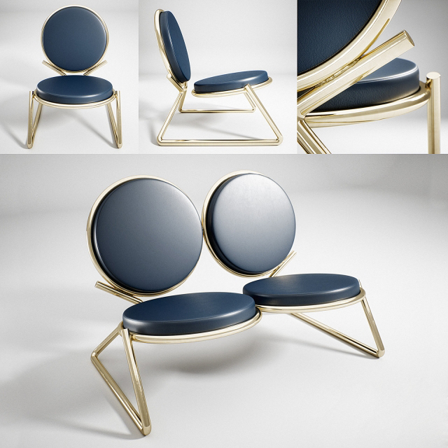 两个圆圈,两个基本模块接枝到本领域的结构几何结构中,去除了灵感,公开地传达了最大限度简化的趋势。这是高品质工业生产的前奏,这是一种优雅的经济,由镀铬钢框架提供的可能性表达,将设计结构设计成一个完整的座位家庭。这样,一把椅子和一把凳子就诞生了,没有扶手,加上一个小小的双座沙发,这是一种精致的正式进化,由良好的品味和阶级所决定。这是一种回归秩序,向一种同时奢华和合成的语言过渡。