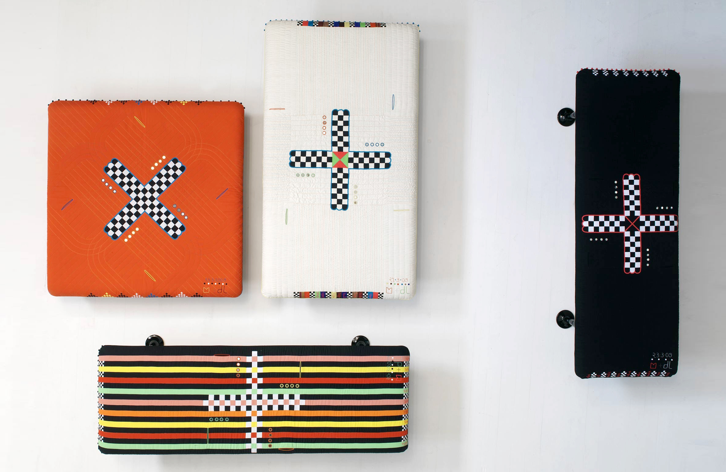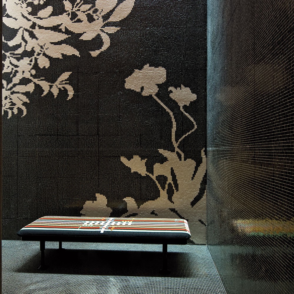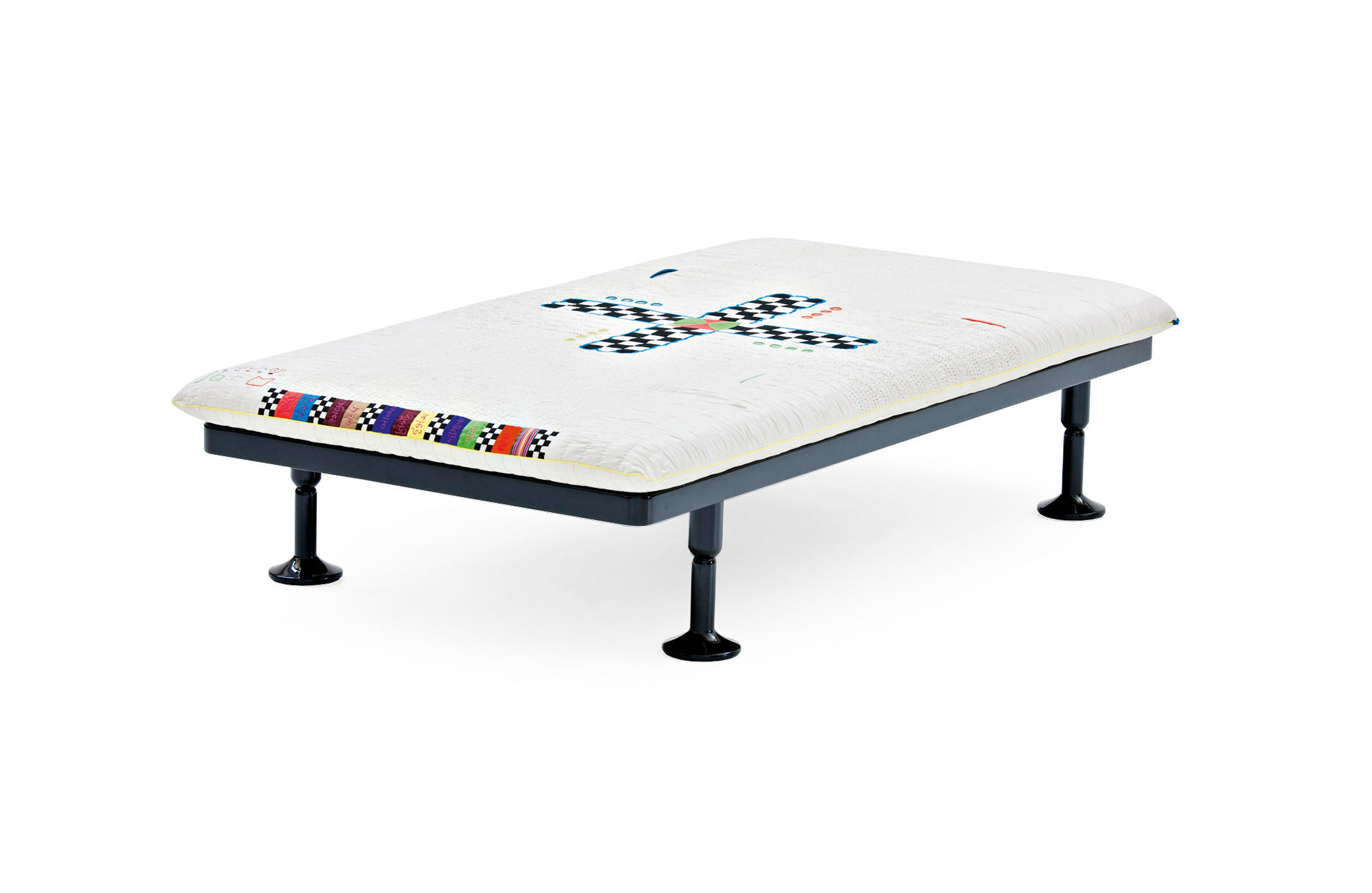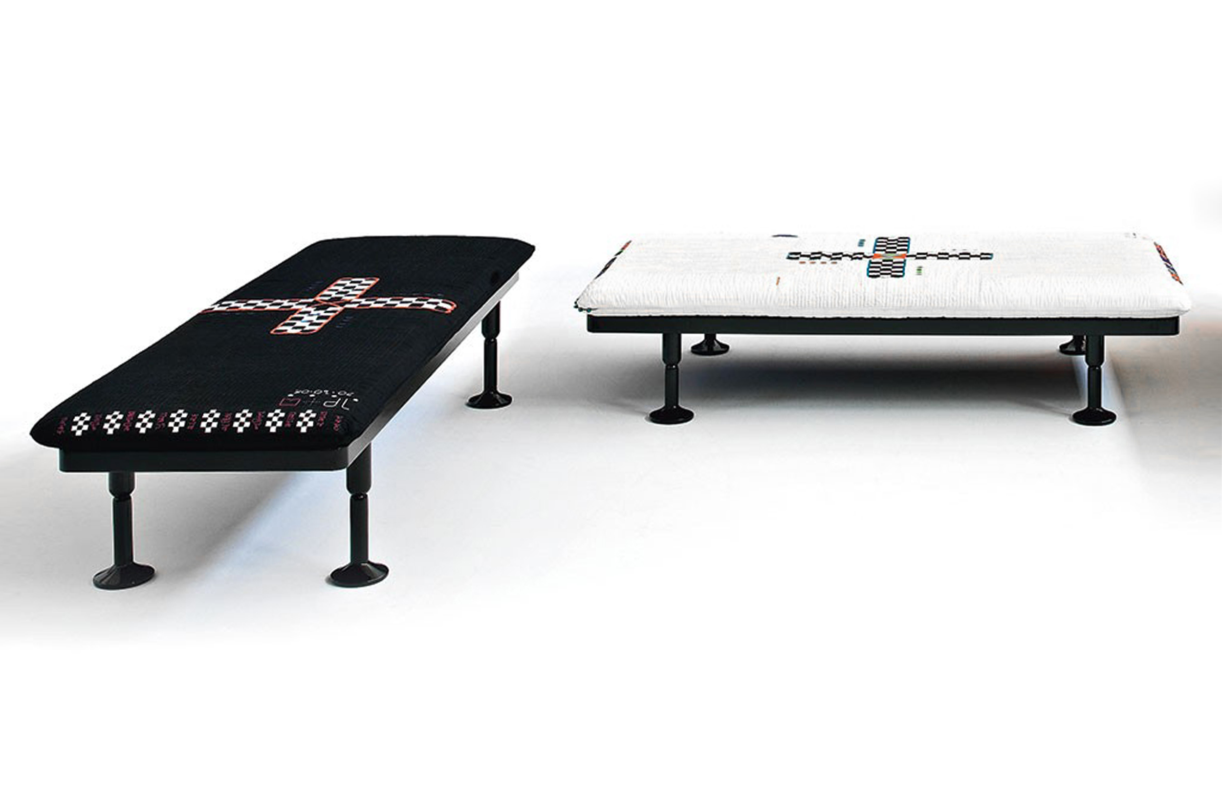 Charpoy,意思是“四条腿”,是对印度大床的反思。Charpoy有一个手工制作的棉花和丝绸床垫装饰由宝贵的手工刺绣。这种装饰是一种游戏的摹本,类似于草稿,在印度,这让人想起了战争时期,王国和妻子被作为赌注赢了。印度轻便床是一种极具价值的物品,它浓缩了手工处理的传统、工艺技巧和丰富程度,与意大利工业生产的黑色漆面与底层木基形成了鲜明的对比。