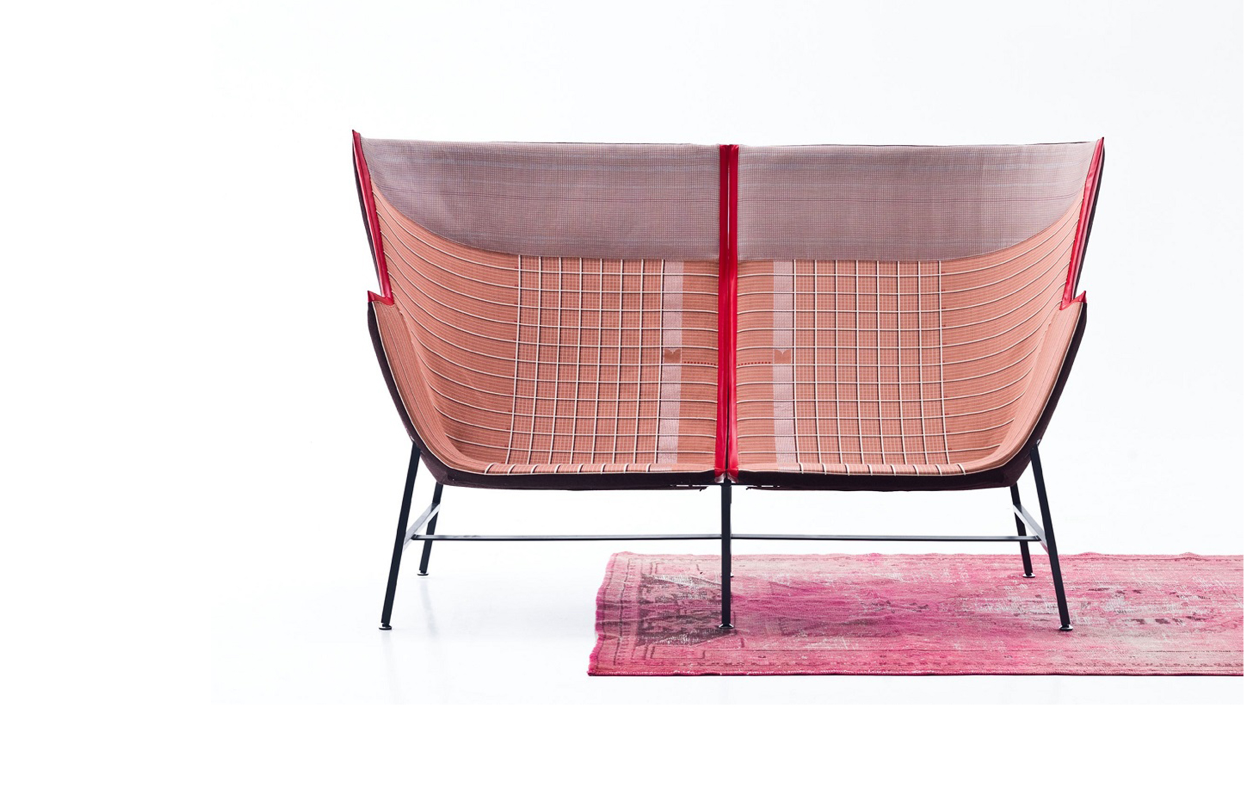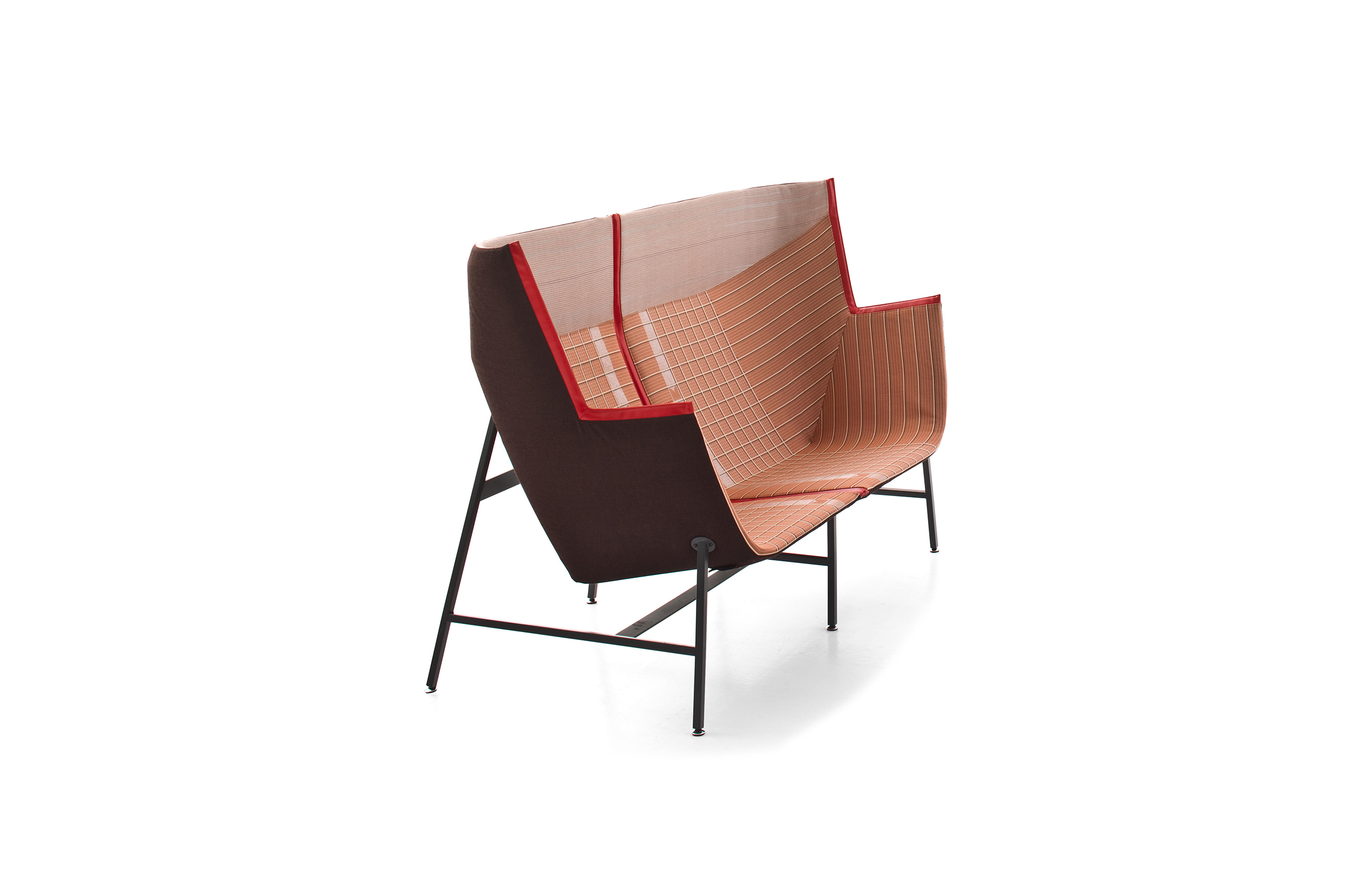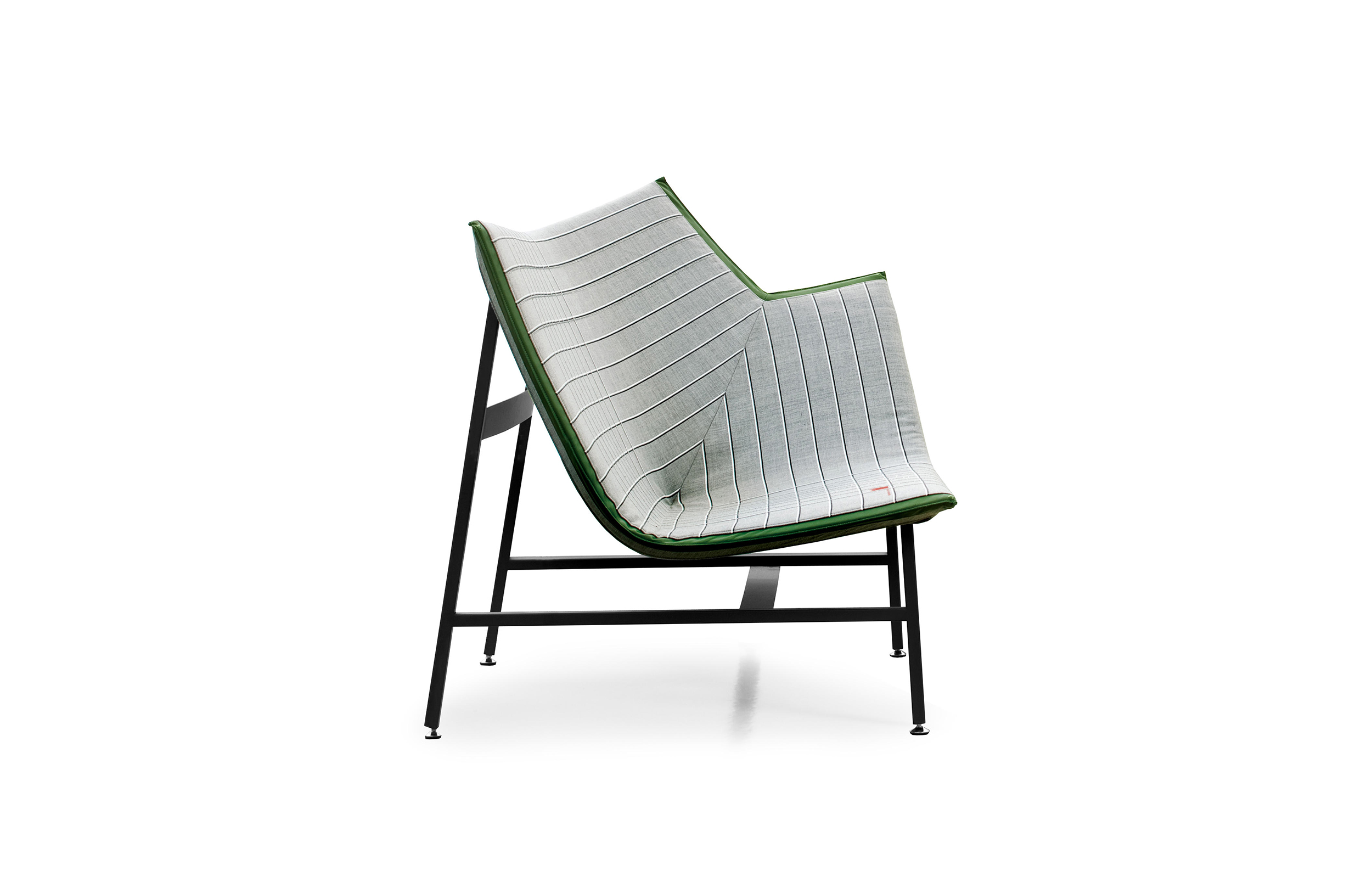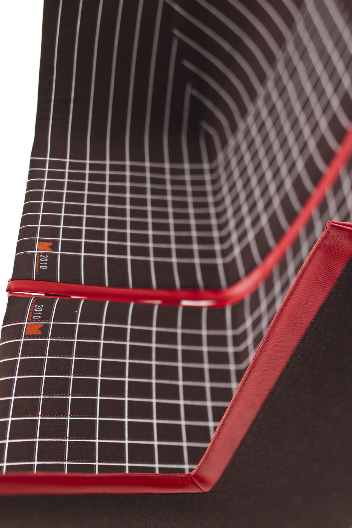 纸飞机起源于一种基于图形纸的织物设计:它的形状来自于纸张的折叠和造型,作为对形式和结构的探索,创造出角度、线条和多边形。它看似简单,却需要高超的裁剪技巧:面料的线条必须与椅子的几何结构完美结合,这意味着没有犯错的余地。