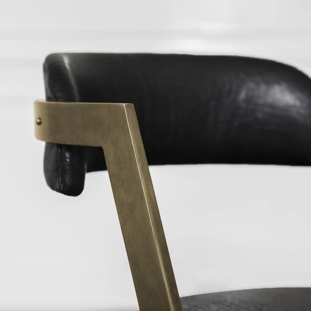 时尚的Studio Chair曲线和边缘融合了黄铜和皮革,营造出与众不同的优雅风格。 凭借其非传统,大胆的形式和标志性的材料组合,椅子从各个角度都是美丽的,非常适合作为临时的桌子,或餐椅。