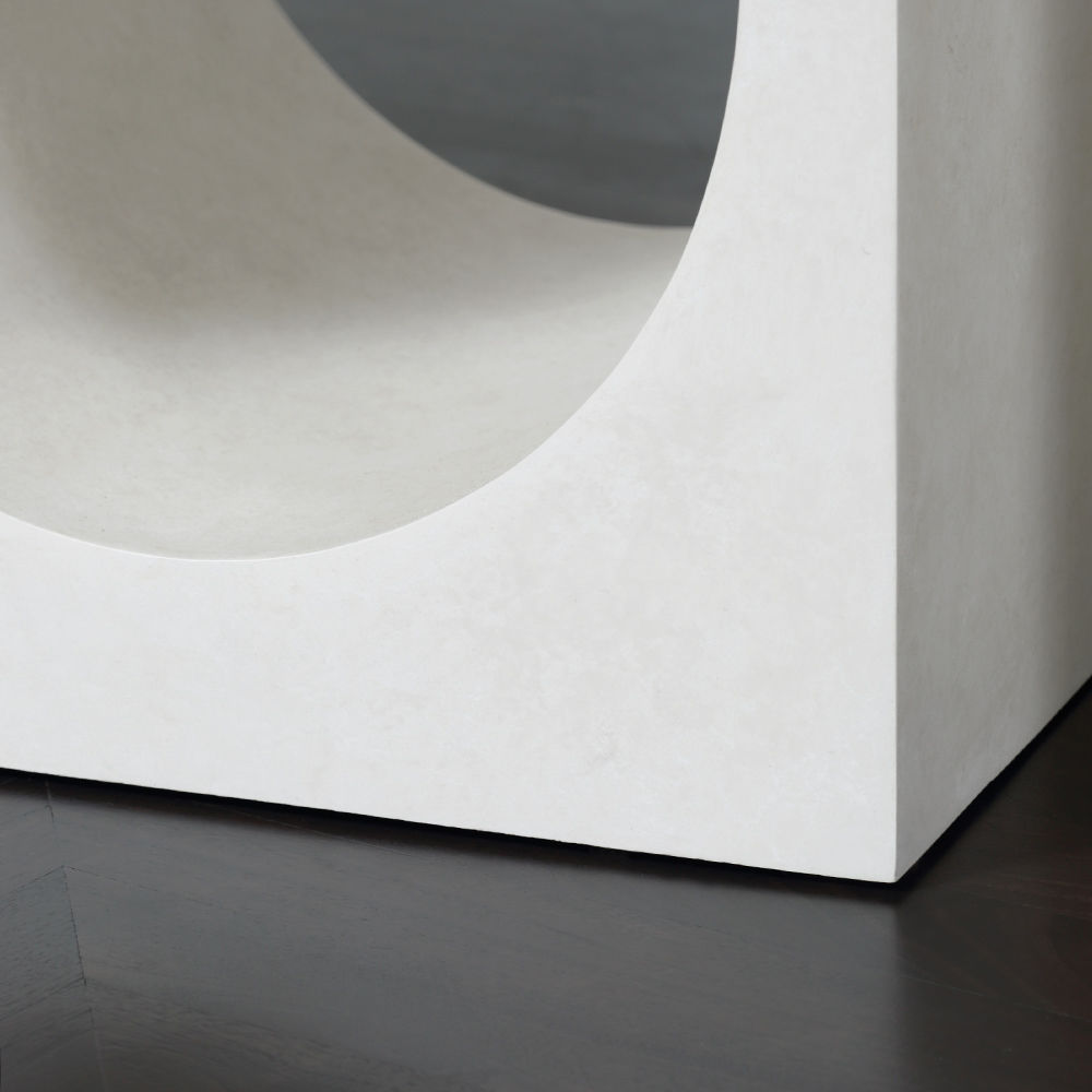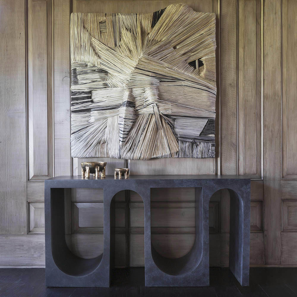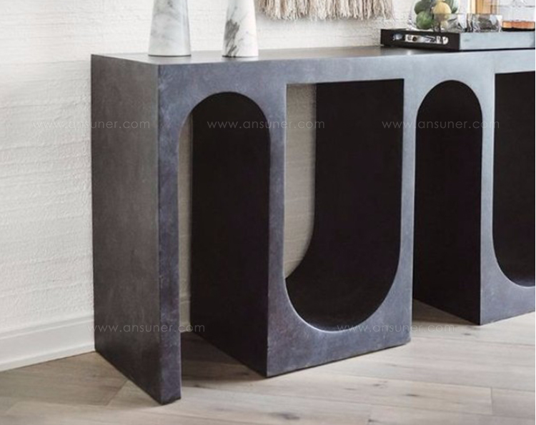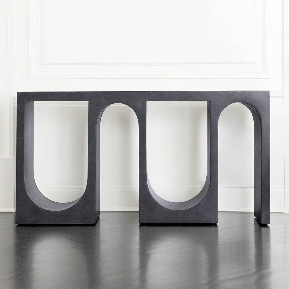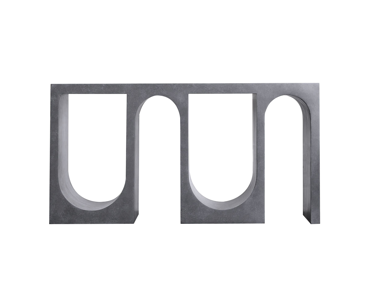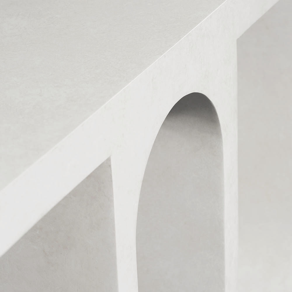 Roxbury玄关台采用实心树脂铸造,手工抹平石膏饰面,具有图形轮廓。 交替的拱形形成了这个独特的玄关台的形状,创造了空间几何和颜色的美丽调制。