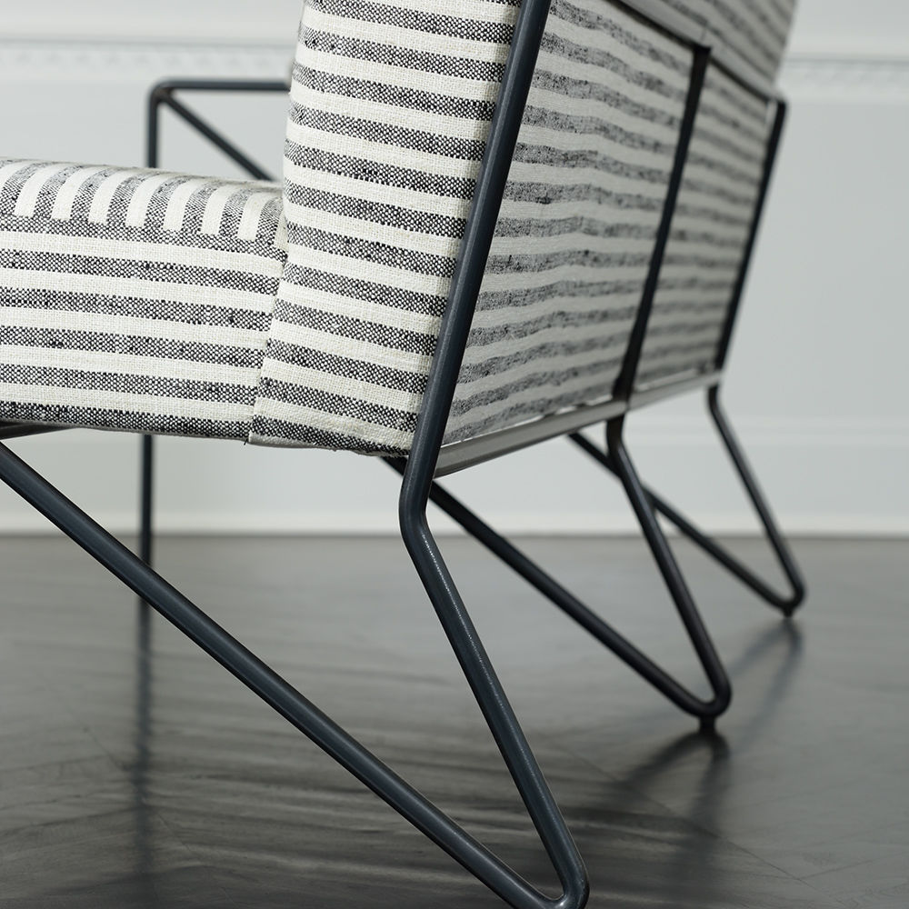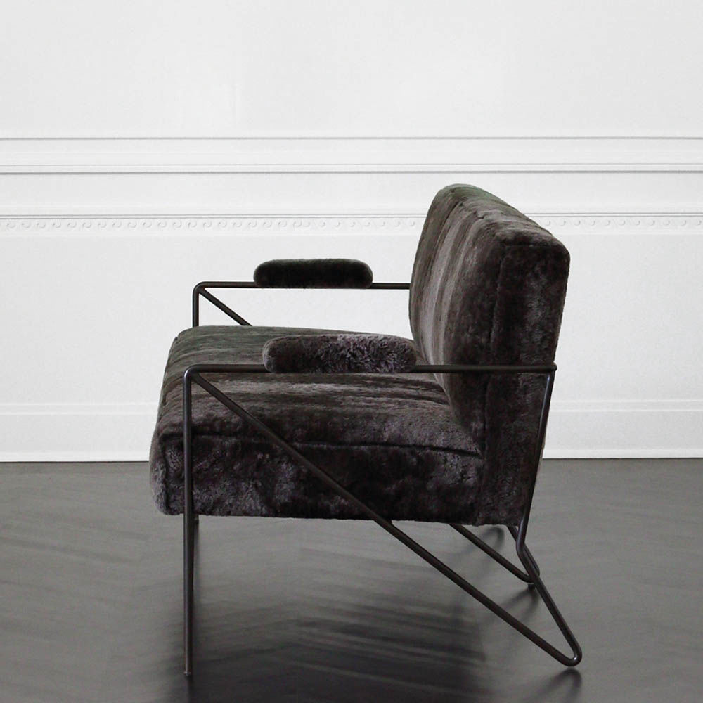 休闲而优雅的Emmett Settee在发夹后腿上设有一个亚光黑色不锈钢线性框架。 座椅和靠背提供轻松的直立座椅位置,使其成为完美的偶尔或此商品在我们的洛杉矶工作室手工制作。图书馆沙发选择。 腿具有多边形滑动以保护地板。
