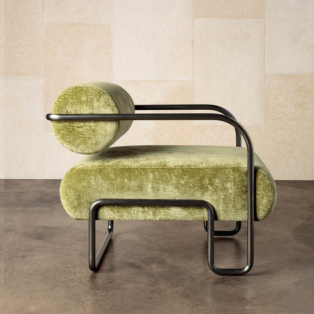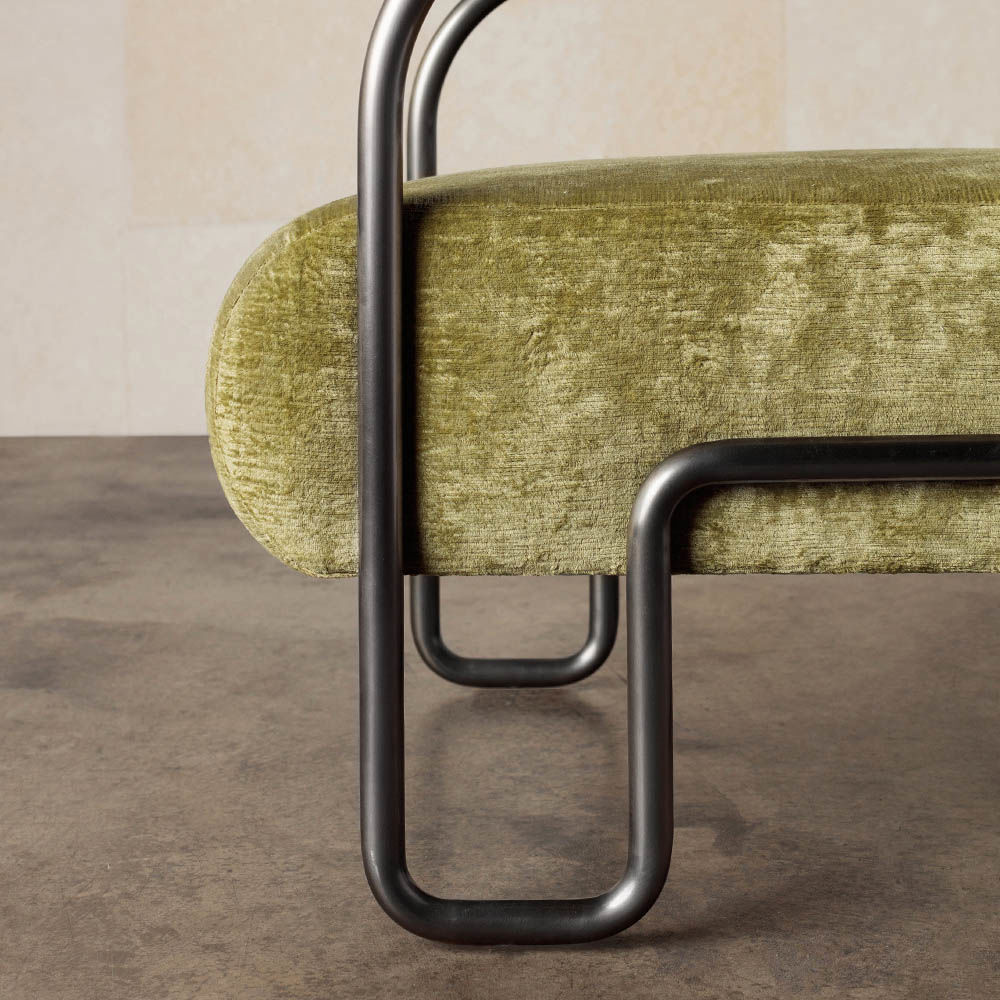 Ardent沙发是一款休闲座椅,采用不锈钢框架包裹的紧身背垫和瀑布座椅。 优雅的弧形框架采用手工涂制的老式白铜色。 这款小巧沙发的简洁线条赋予其现代感,同时保持平易近人的舒适感。