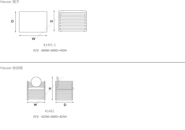 Hauser Ottoman的高对比度,交替的黑檀木和漂白胡桃木板条形成了现代,通风,雕塑般的外观,展示了纹理皮革定制的座垫。 这些凳子可以组合在一起形成一个休息区或矮桌。