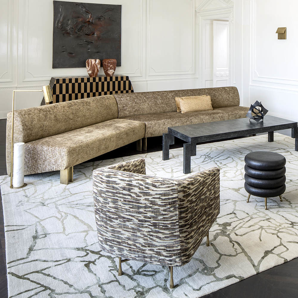 Laurel凳子由四个柔和弯曲和堆叠的形状构成,赋予作品有机和雕塑般的轮廓。 采用抛光青铜铸造黄铜腿和细长泪滴脚,这种低座位可选择精选面料和皮革。