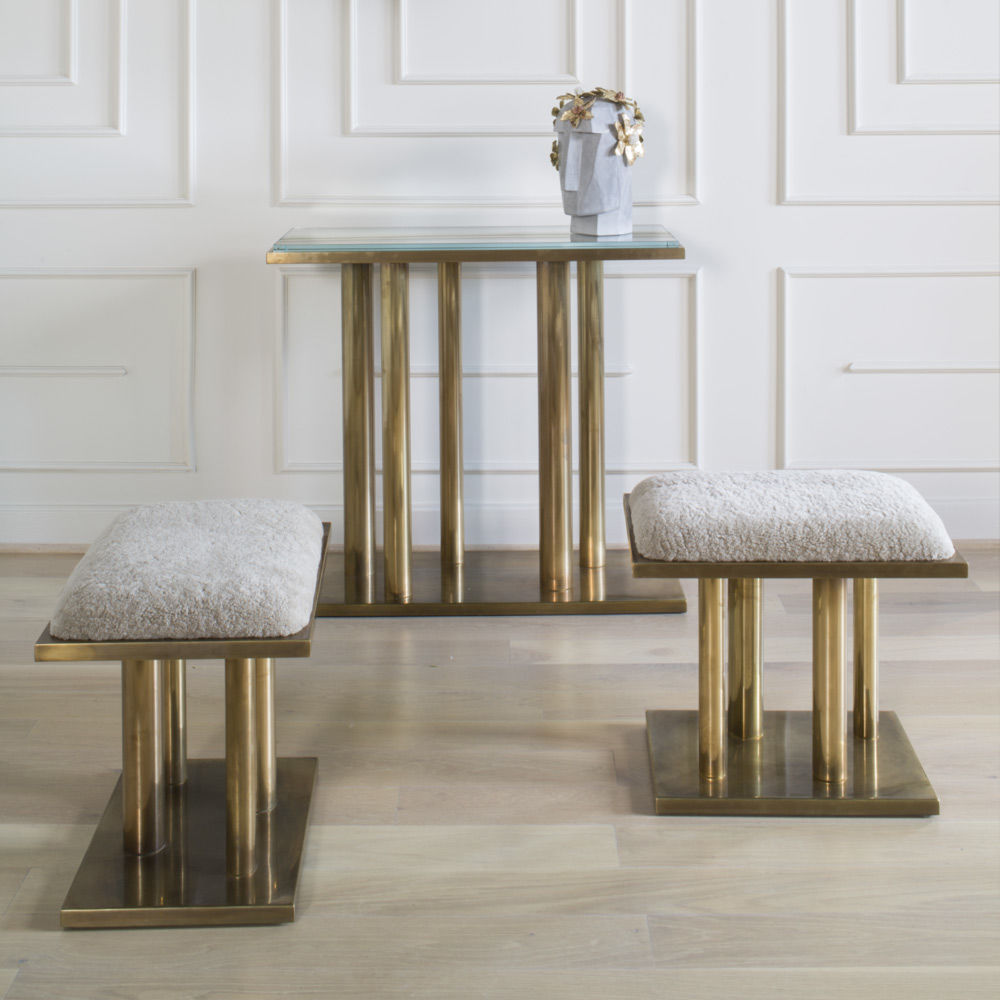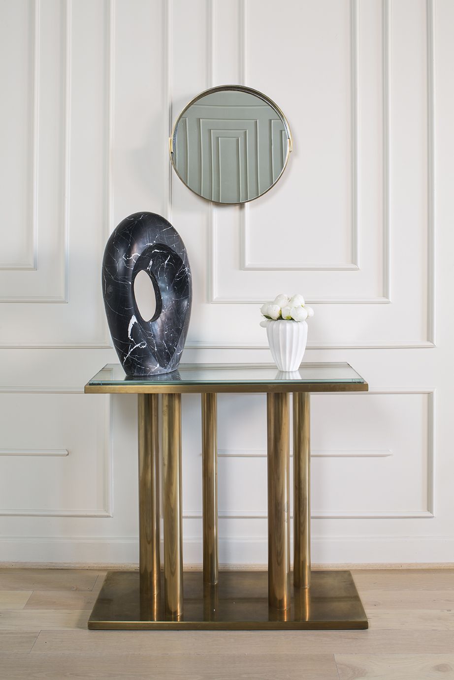 标志性的Holmby玄关台采用我们标志性的抛光黄铜饰面,打造出大胆而经典的选择,是任何家居的理想选择。 各种不对称的黄铜柱提升了黄铜古董镜面。
