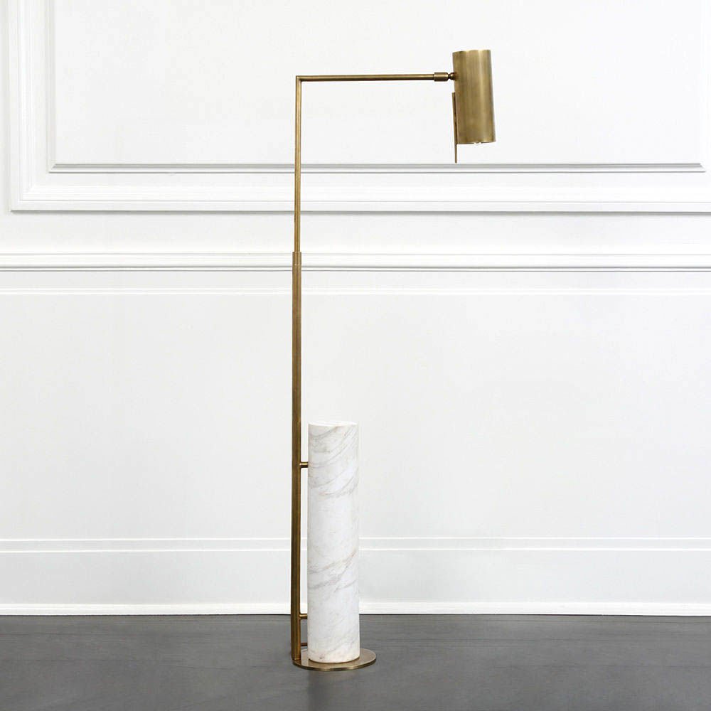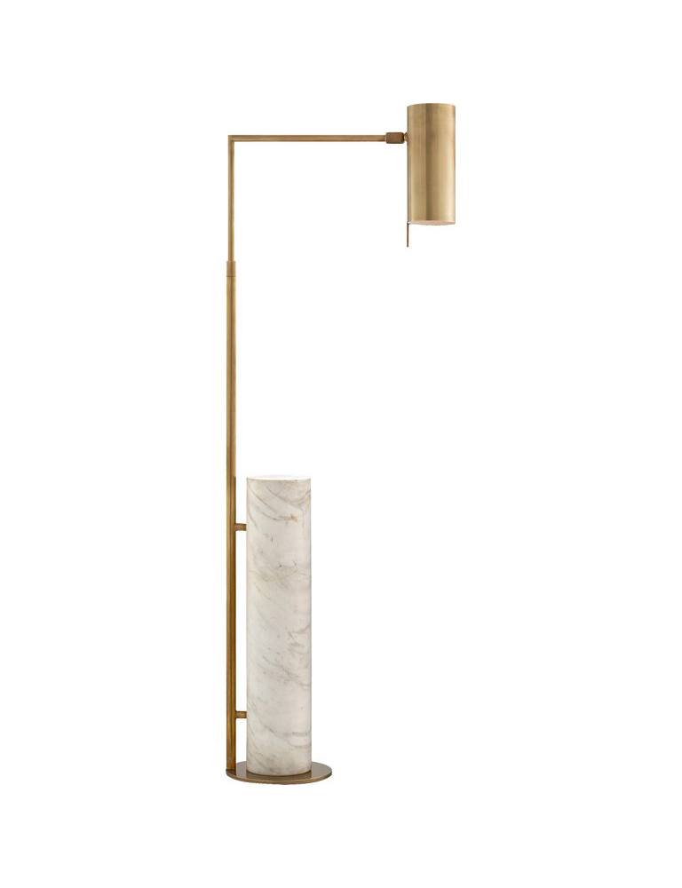 这款极简主义药房落地灯采用古董抛光黄铜或抛光镍制成,功能齐全,美观大方。 可调节臂上的管状遮阳板悬挂在圆柱形大理石底座上方。 灯旋转40度; 中心左右两侧20度,因此您可以轻松地将它放在您的上方作为阅读灯。 要进一步瞄准灯泡,请使用遮阳板上的手柄,该手柄也可以上下旋转180度。 织物缠绕的线具有易于开/关的开关。