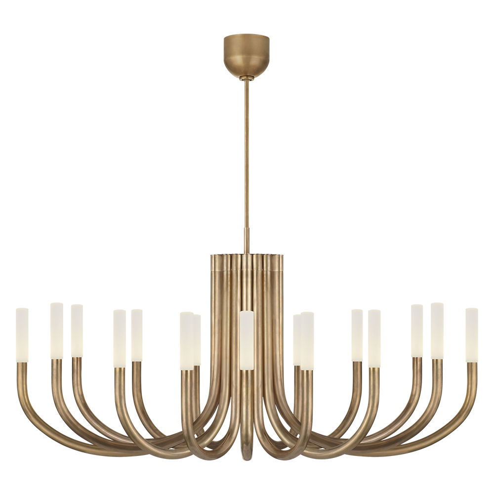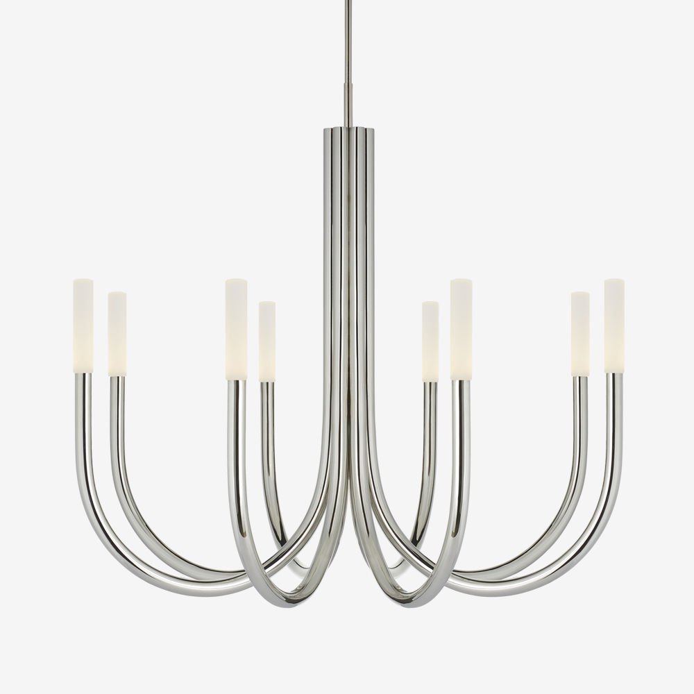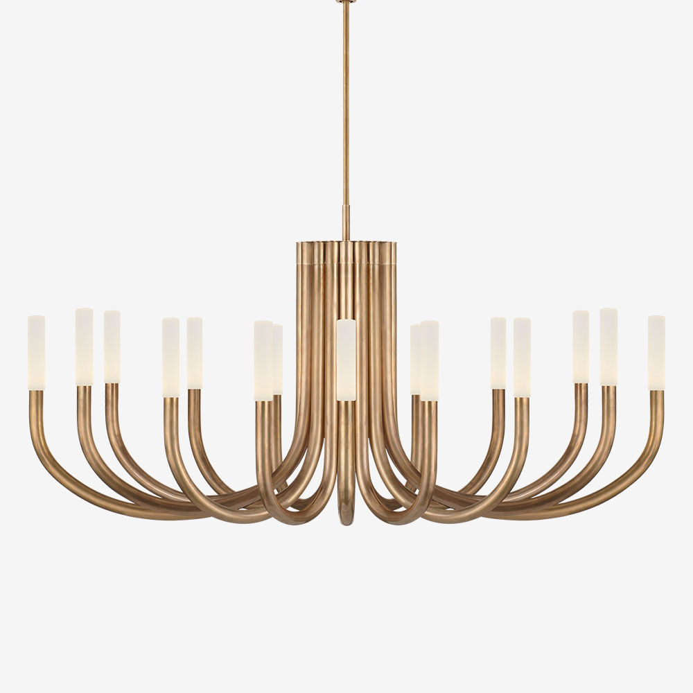 Rousseau Chandelier(卢梭枝形吊灯)是现代设计和极简主义形式的标志性融合。 这款枝形吊灯有青铜色,古董黄铜色或抛光镍色和蚀刻水晶镜片,适合潮湿环境。