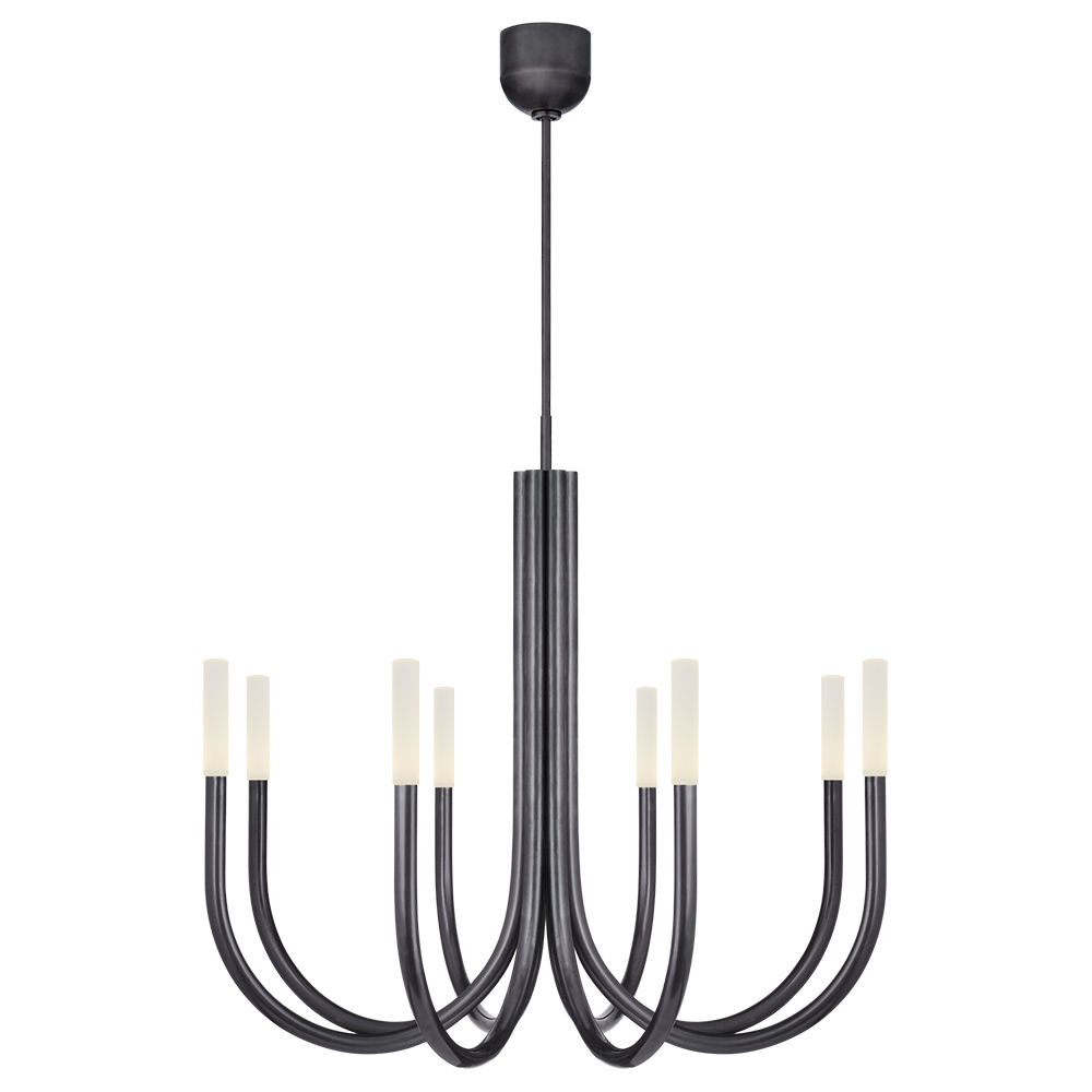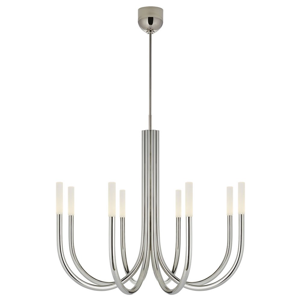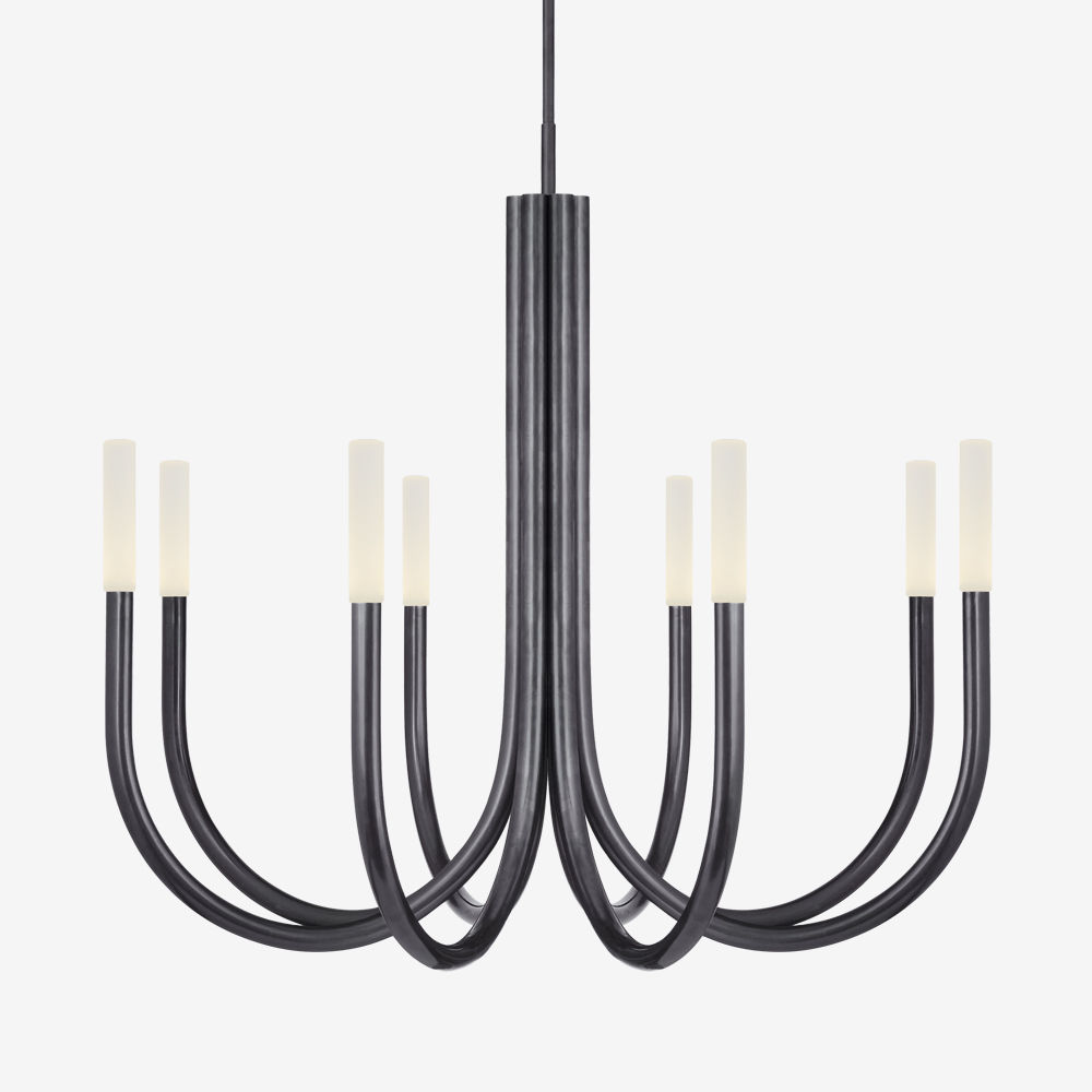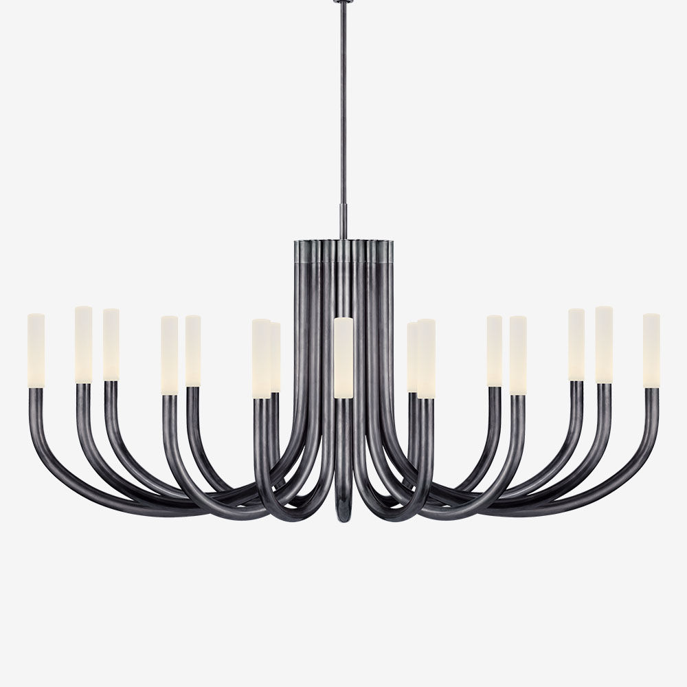 Rousseau Chandelier(卢梭枝形吊灯)是现代设计和极简主义形式的标志性融合。 这款枝形吊灯有青铜色,古董黄铜色或抛光镍色和蚀刻水晶镜片,适合潮湿环境。