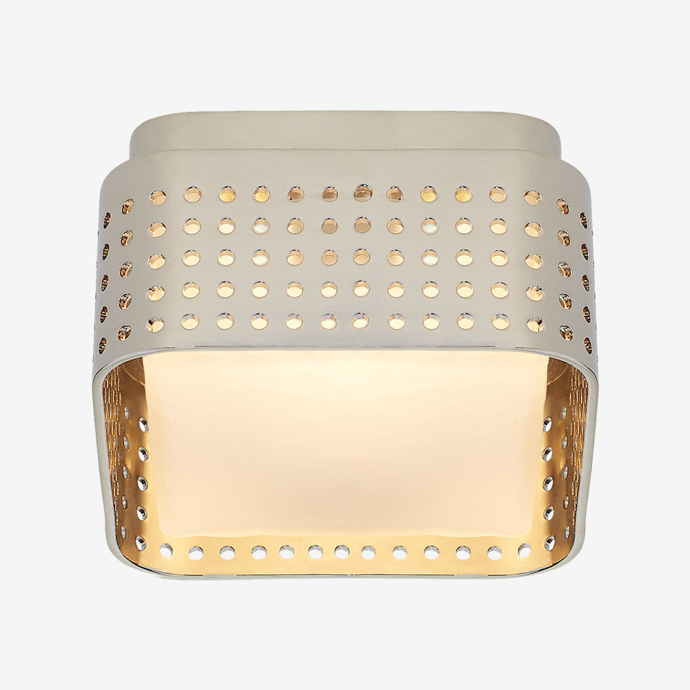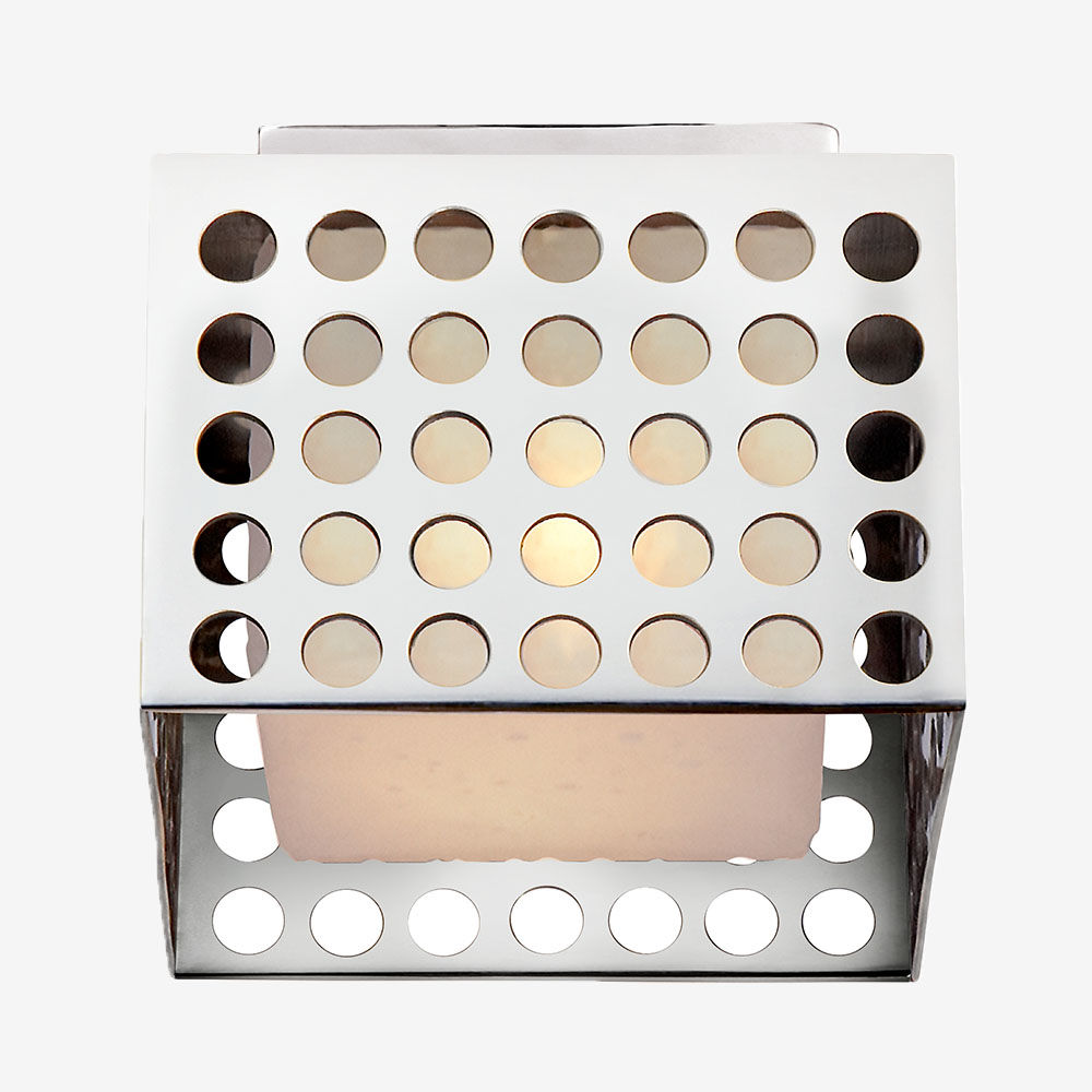 这个系列以雕塑形式的穿孔金属为特色,源于对建筑的热爱,以及光与形式的相互作用。 这些穿孔是一个标志性的设计元素,可以漫射和反射光线,为任何空间增添精致的质感和丰富的深度感。 提供古董抛光黄铜,青铜和抛光镍与云雾玻璃。