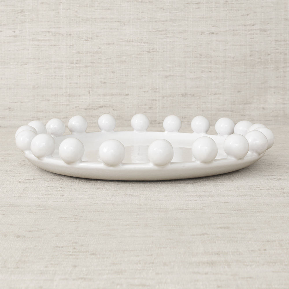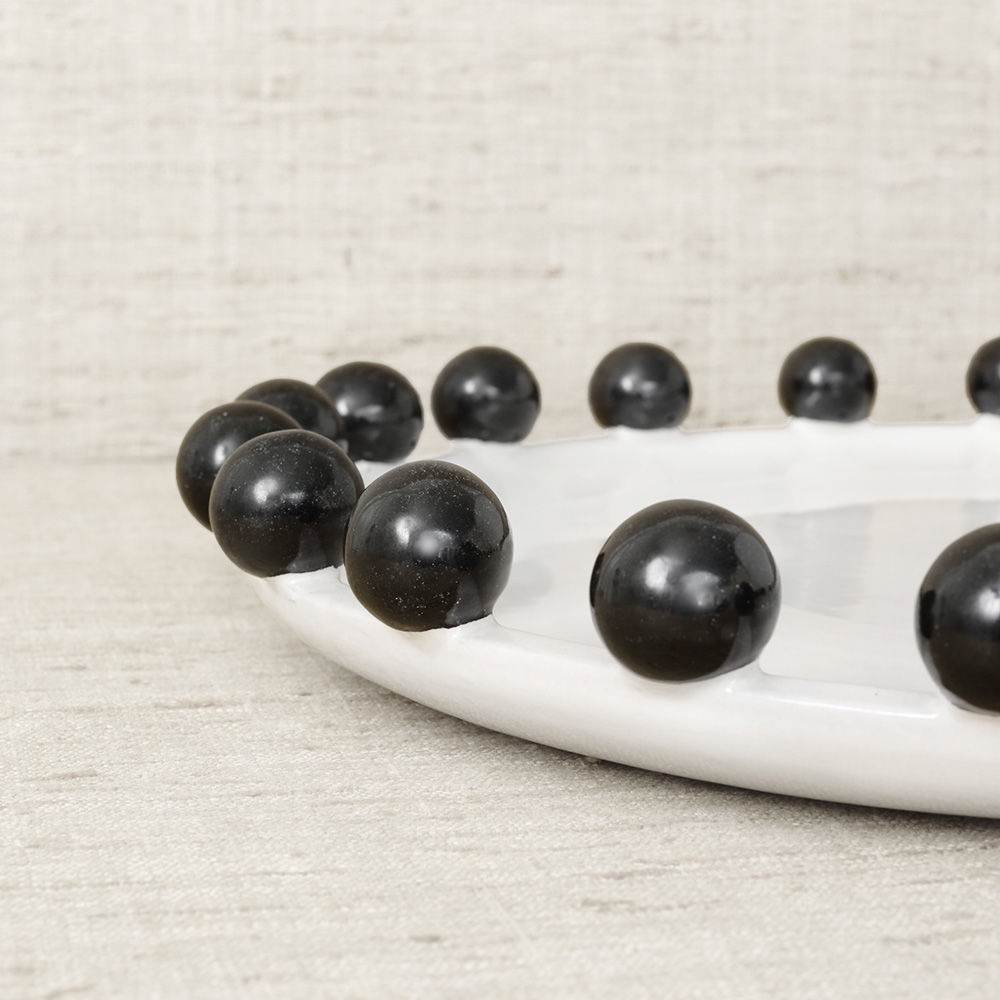 这是一款独特的白色陶瓷餐具,配有大型乌木装饰球,边缘饰有令人兴奋的细节。 从Noir和Blanc系列的大盘中嵌入,但也可作为独立的作品。 非常适合娱乐或在咖啡桌上。