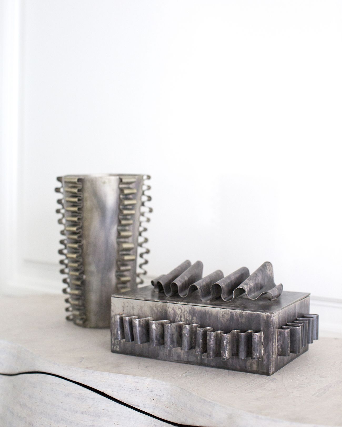 Avant盒子在我们的洛杉矶工作室手工制作,优雅衬里采用黑色皮革制成。 盒子采用酸洗方式,具有独特的银色光泽,产生真正独特的作品。