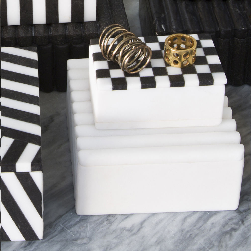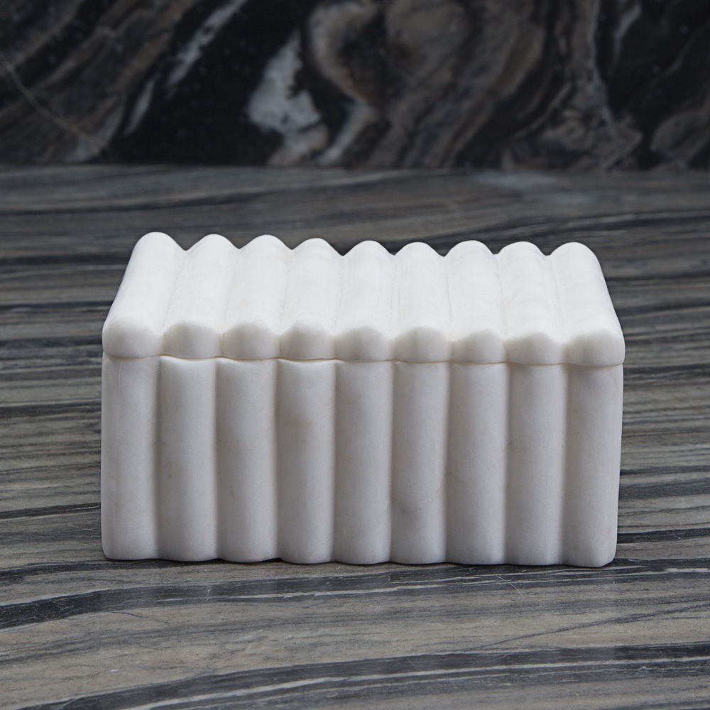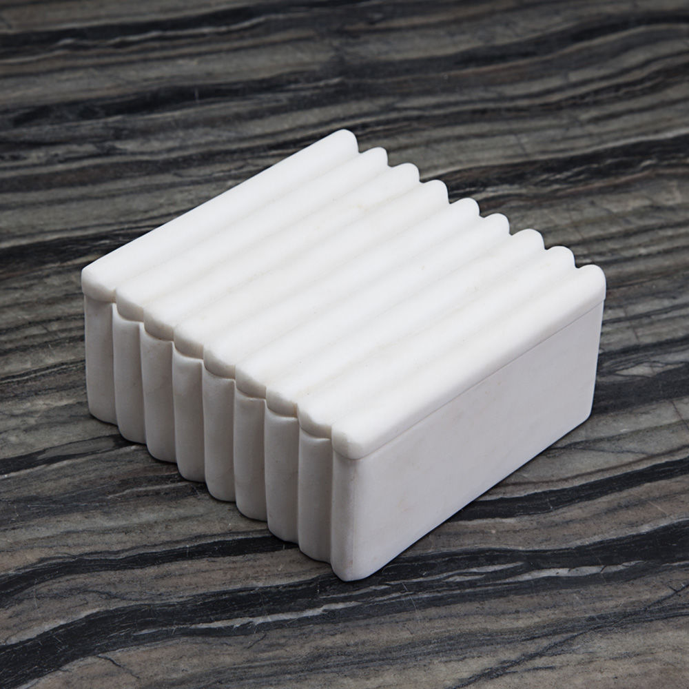 具有一个由手工雕刻的黑色或白色卡拉卡塔大理石制成的带罗纹的盒子。凯利对材料的选择使这件作品与众不同,它具有强烈的男性线条。一个完美的别致和简约的桌面或书桌配件。