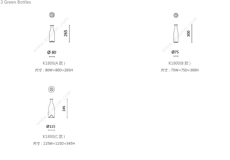 乐竞平台 - 附件|饰品|办公家具|设计师家具|3个绿色瓶子