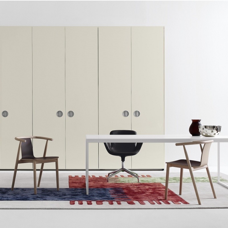 椅子采用固体灰结构,白色染色,鸡蛋染色或樱桃红色苯胺; 座椅为灰色或白色,棕色/波尔多色,灰色/浅蓝色,黑色油毡(后表面始终为灰色)或软垫布或皮革。