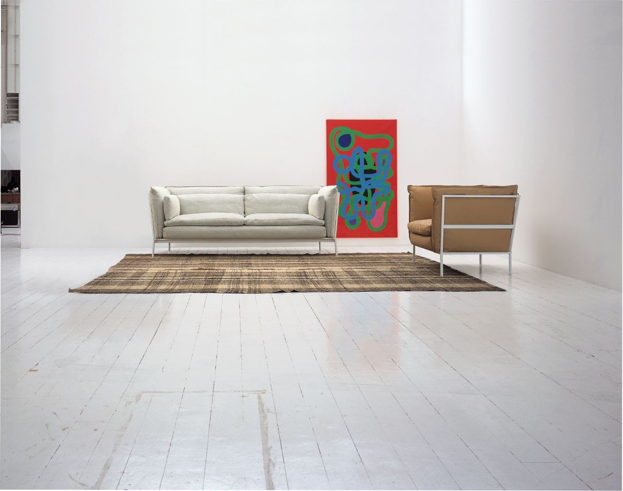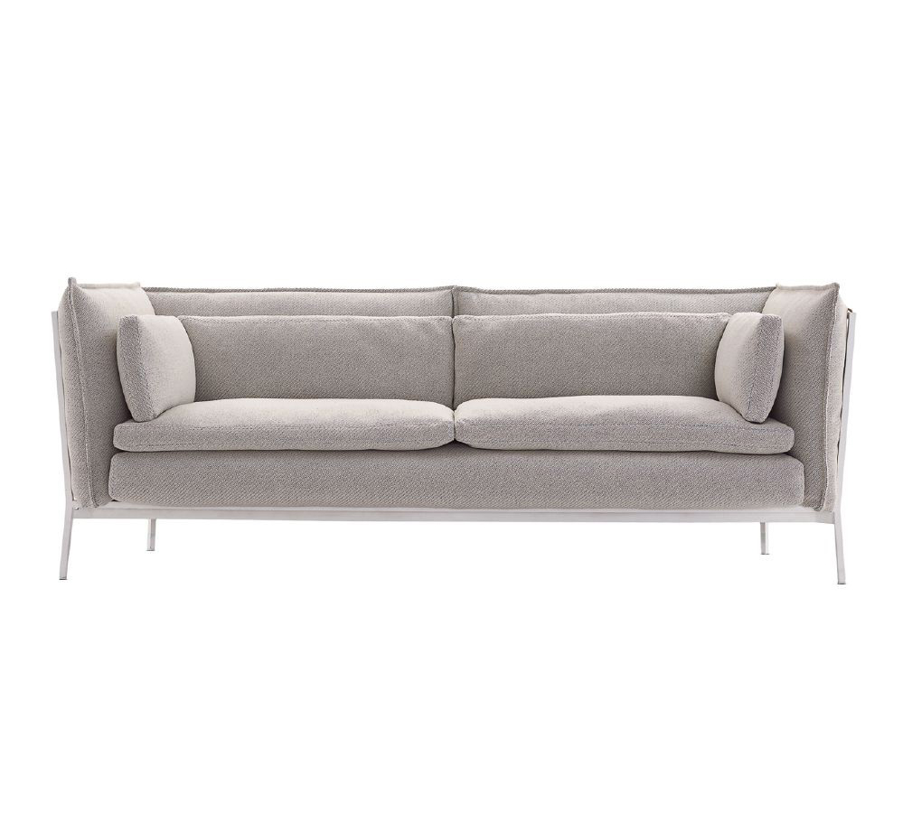 Basket 011沙发由哑光涂漆金属结构支撑,白色,红色,灰色或黑色。 可拆卸的覆盖物可从该系列的面料和皮革中获得; 垫套也可以结合不同的面料和皮革制成。