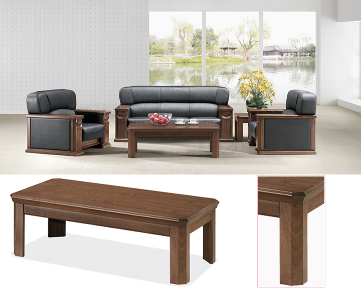 ※ 上图为配套沙发和茶几的细节展示,实木真皮沙发,茶几棱角分明;颜色多种选择,可根据使用单位需求进行订做。(沙发规格:单位:1100W*940D*950H 二位:1600W*940D*950H 三位:2100W*940D*950H ,茶几长几:1380W*700D*450H 方几:700W*700D*500H)