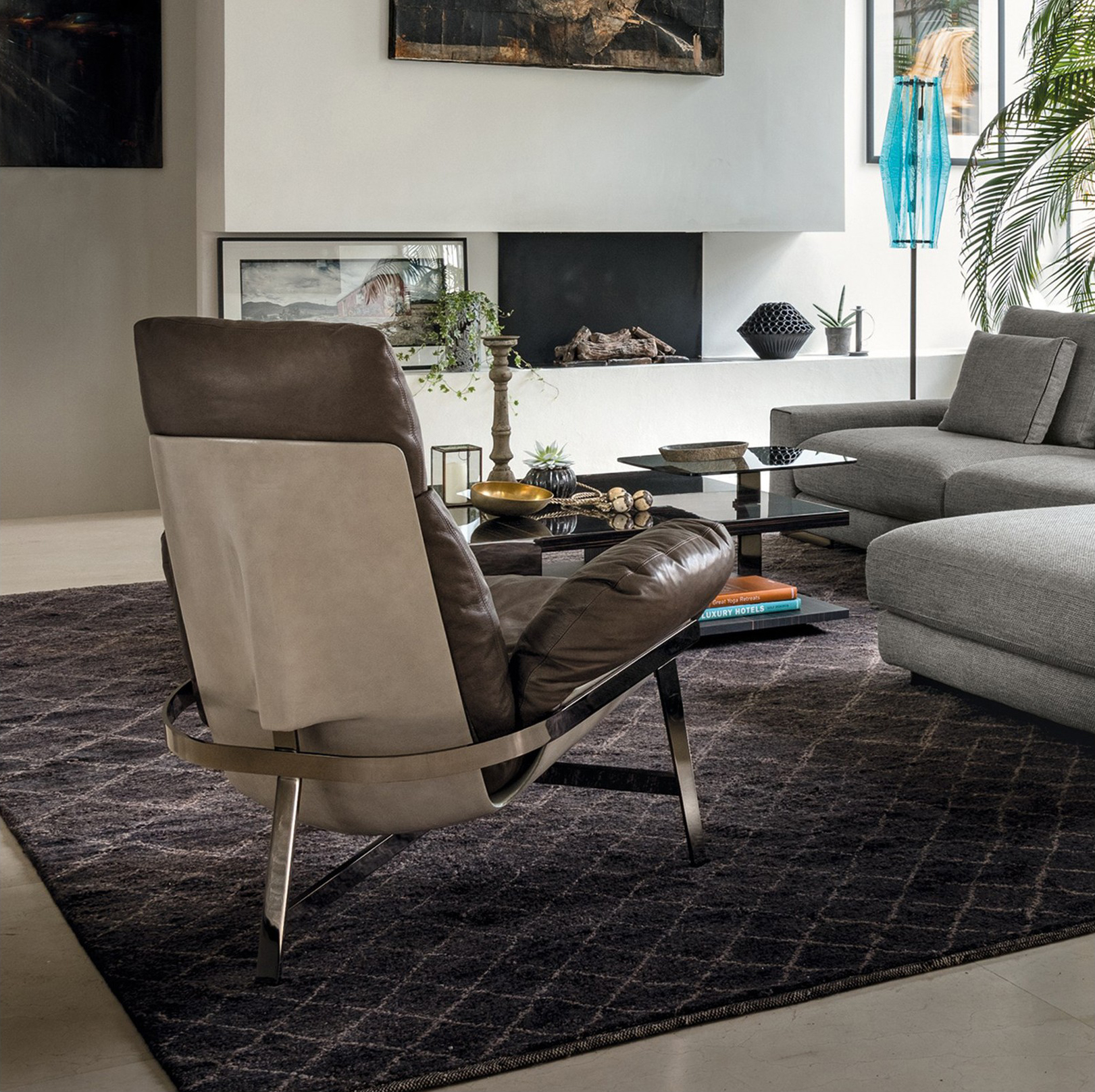 优雅而符合人体工程学的平衡。 动态稳定的温和。建筑配置突出了永恒的外观,并强调了个人使用材料的重要性。木星扶手椅有一个折叠的金属拱结构,由玻璃纤维外壳支撑着,填充的羽毛保证了高水平的舒适感。