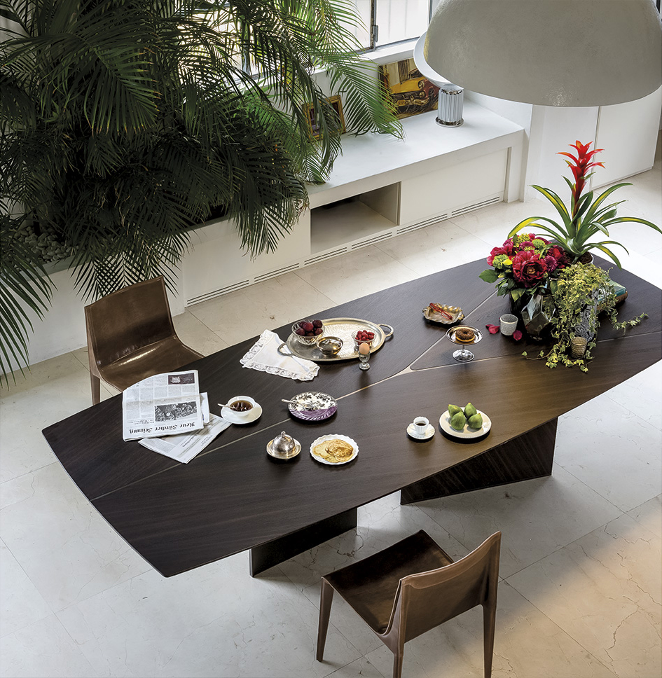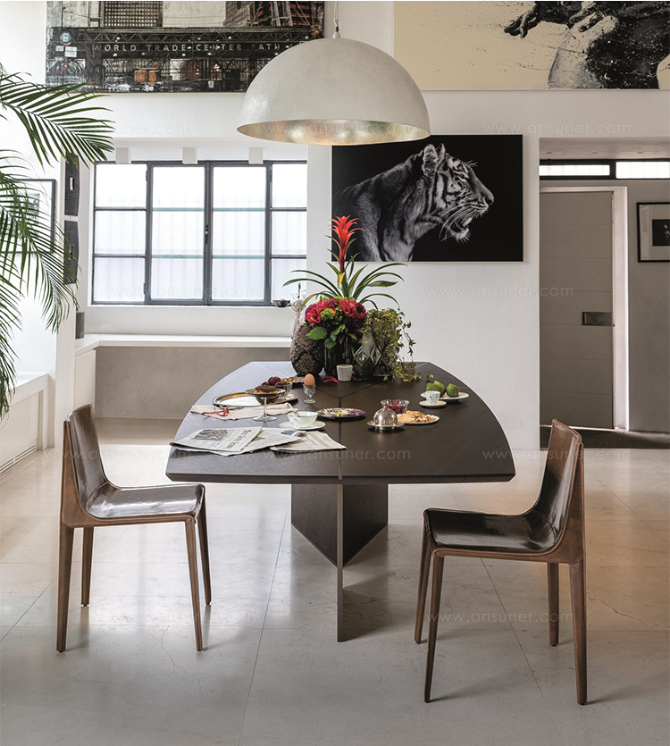 建筑的魅力与现代设计相结合。由Manzoni & Tapinassi设计的Epsilon餐桌是连接这两个世界的一种结构。这个底座,以一个Y字的特定的图形标志,在桌面上也可以看到,通过金属和木材之间的相互作用而丰富,是其特征显著。造就了这一个具有强烈动态个性的作品。