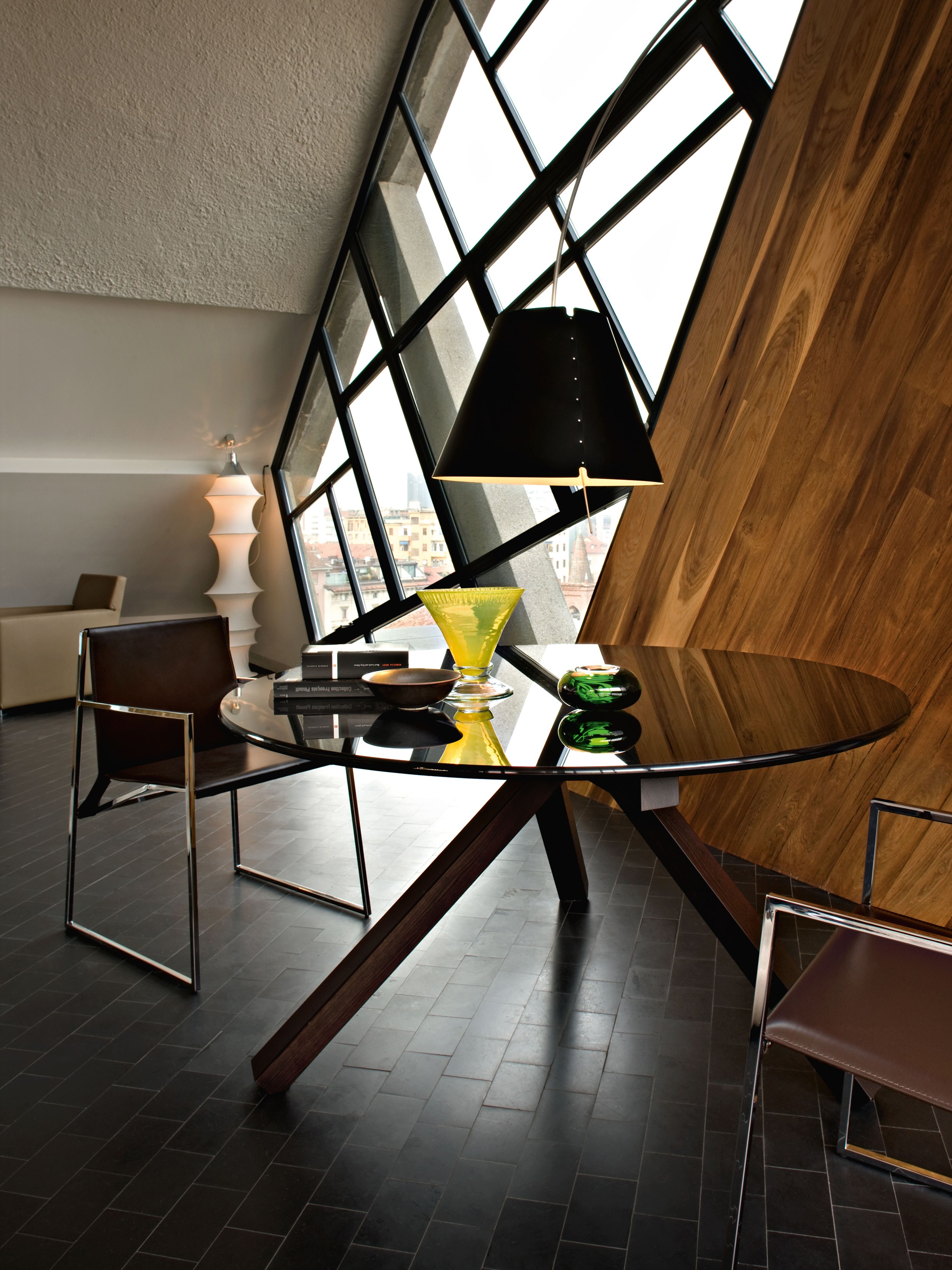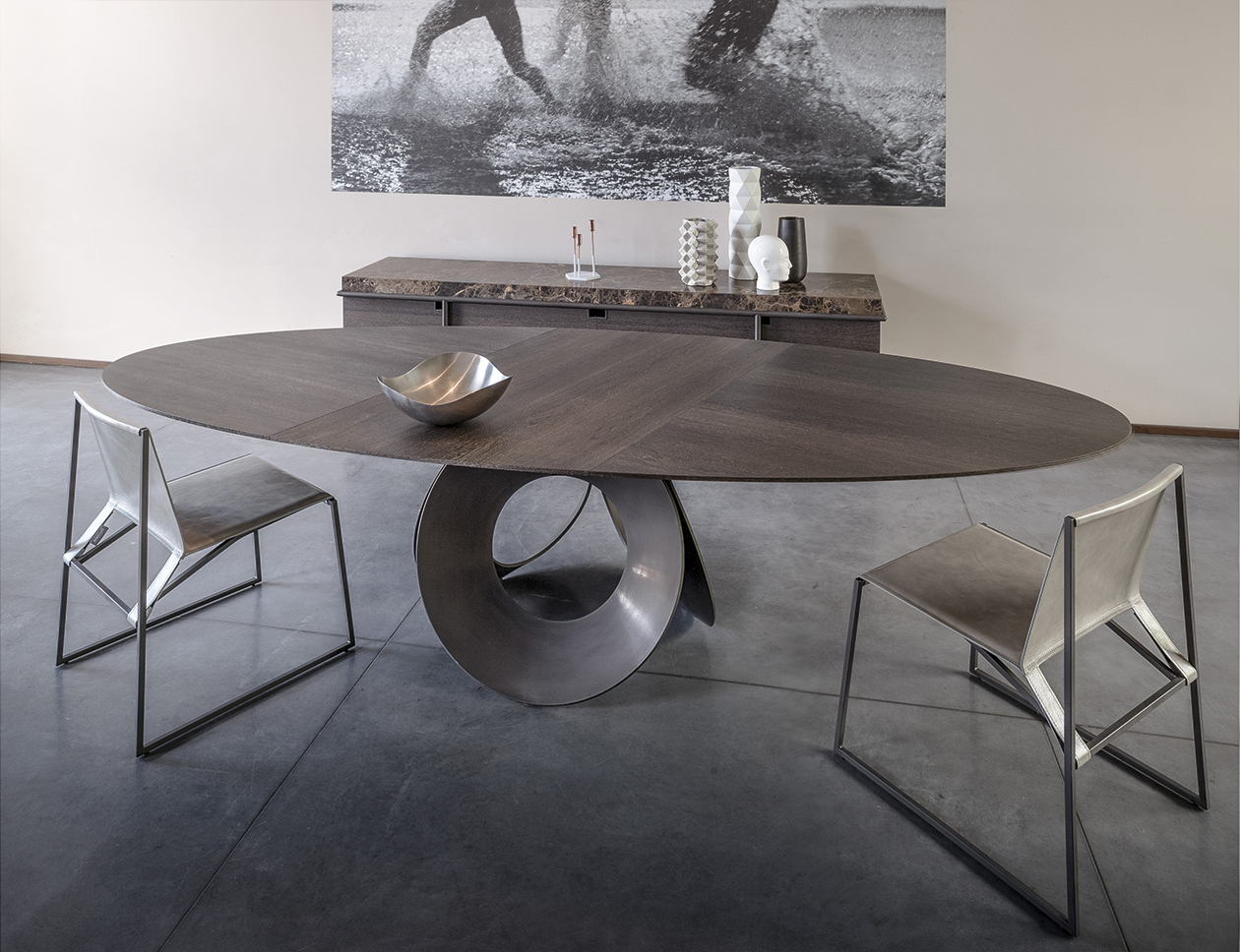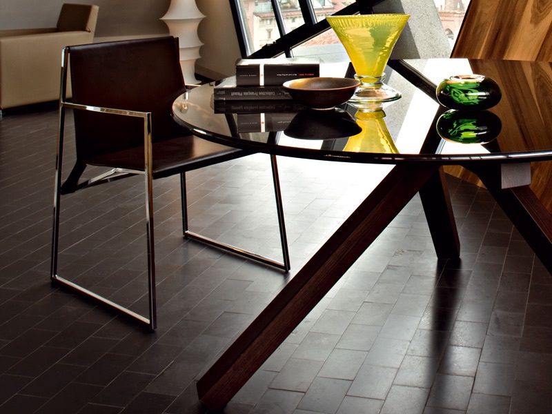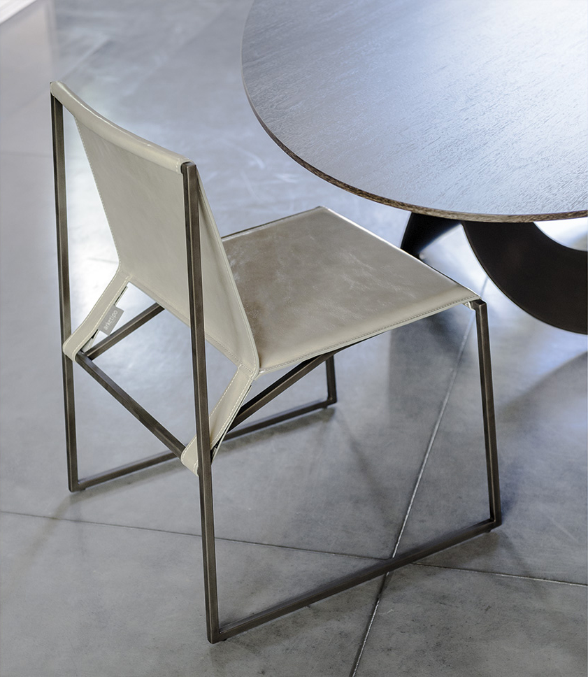 几何和简约的线条勾勒出了这种朴素典雅的椅子。这种金属结构,在抛光铬、云母棕或氧化灰色中都有,而且座椅和靠背可以用人造革或皮革制成,这是一件奢华而又谨慎的作品,适合周围的每一个人。