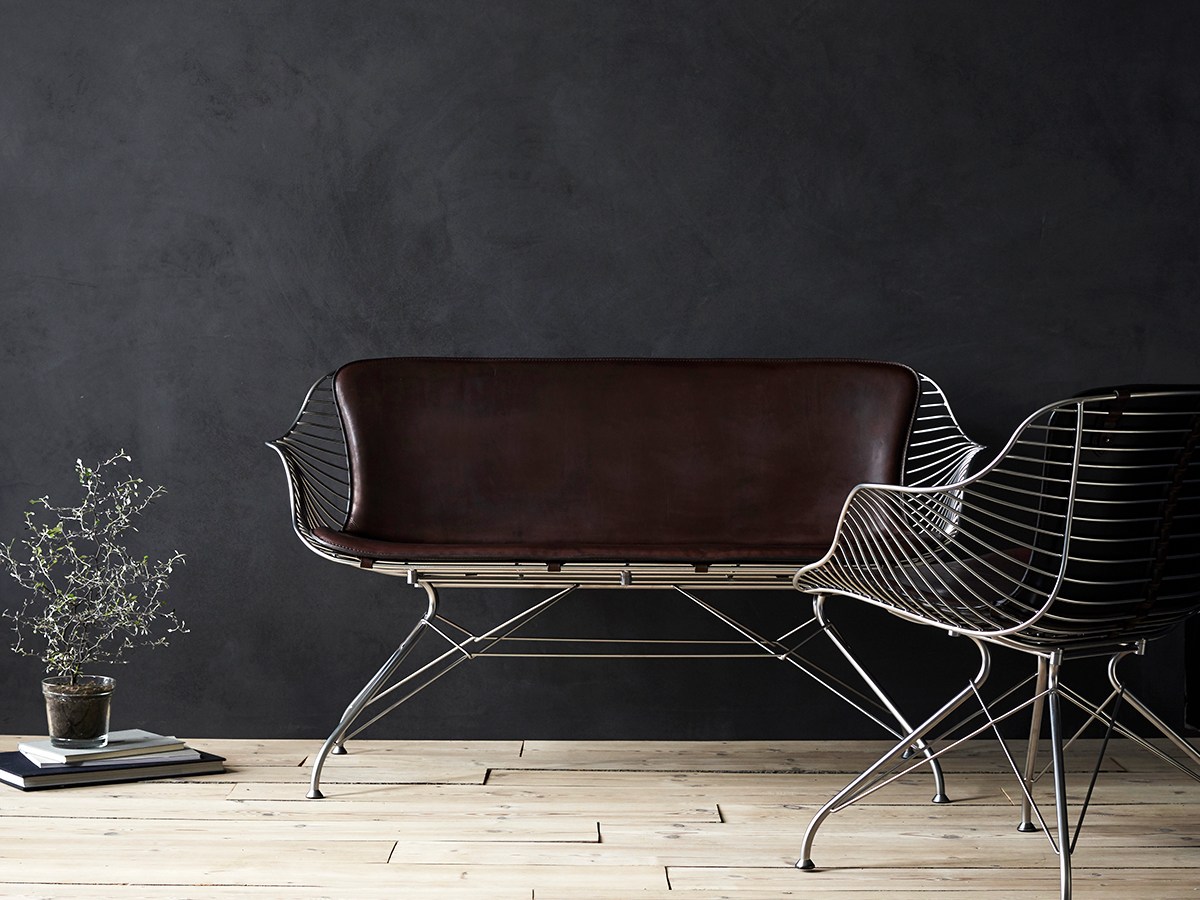 金属丝躺椅由Jasper Overgaard和Christian Dyrman设计。2014年设计的金属丝躺椅是一种更低、更宽、更平放的版本,与铁丝餐椅相比。