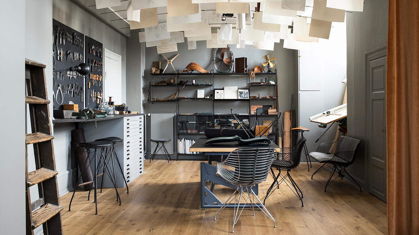 每一把椅子的编号都是独一无二的,制造商的首字母是用钢和皮革制成的。