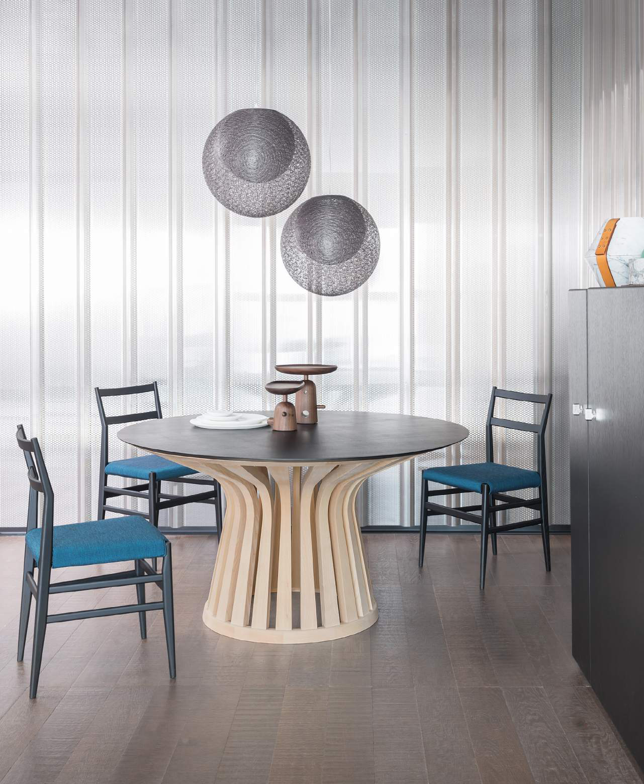 这一系列的作品,灵感来自于Le Corbusier(勒柯布西耶)的绘画作品,由亚米·海因(Jaime Hayon)设计,以更广泛的饰面完成的艺术品。 除了2015年出现的原始黑色固体灰木外,现在还有四种新的表面处理:绿色石油彩色,紫色红染色,泥浆彩色ashwood,开孔和哑光天然美国核桃。