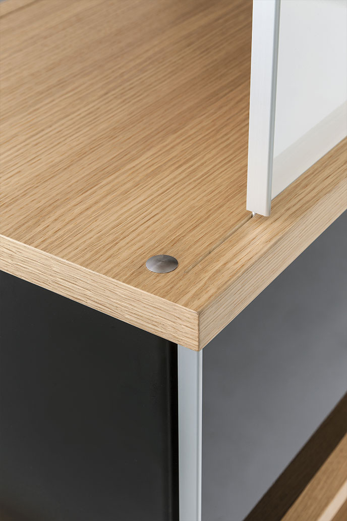 该系列包括餐边柜、碗柜和书架等,采用地面支撑或对称及非对称悬架,还包括与空间建筑风格相匹配的独立式书柜。基本单元组件为橡木搁架,阳极处理或黑色漆面的铝质单元。包括5种不同的高度,以实现物品和书籍不同风格的最佳布置。每种家具都配有附件,如铝盘等。书架滑轨采用阳极氧化铝、红色、蓝色、绿色、黄色、灰色、白色或黑色漆面。这款模块化书架由Charlotte Perriand设计,结构化处理运用巧能生精。对女设计师来说,每个模块结构并非一个单纯的块面,经过玩味地组合能有让人欣喜的效果。这件作品高度表现了Perriand在家具设计上的先锋精神,其对建筑艺术性、居住性,生活的信仰。