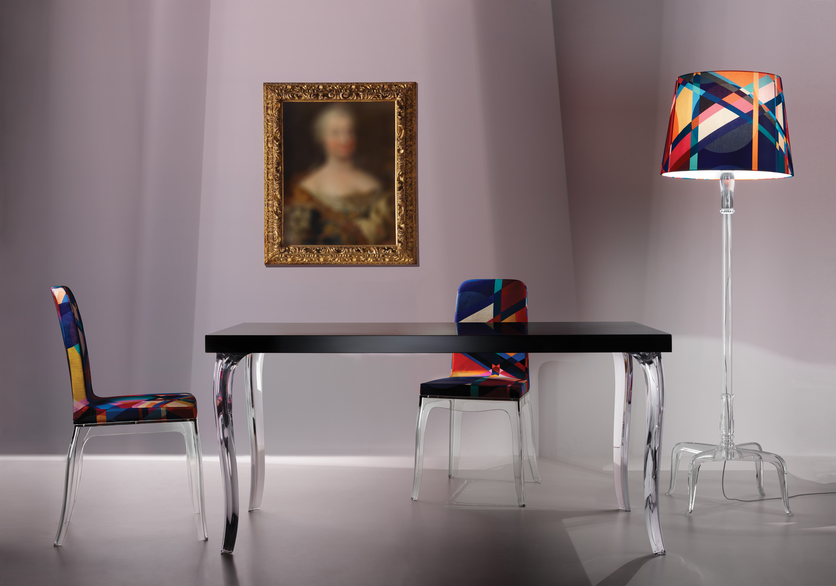由Marcel Wanders设计的B.B椅子,像Louis Philippe椅子一样呈瓮形腿,采用纯粹的Wanders风格,并且像Louis Philippe椅子一样要求身体覆盖优雅的黑色巴洛克装饰或生动的多色图形。 B.B.拥有一个舒适而优雅的魅力灵魂,成为生活区的完美之选。 椅子与桌子相配,具有相同的腿部图案。 两条腿有两种颜色可供选择:黑色和透明。
