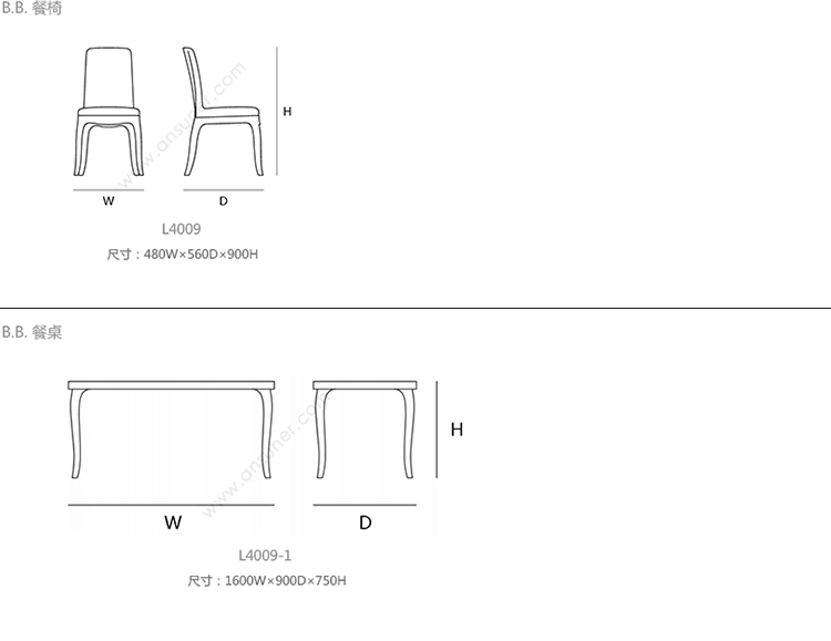 B.B. 餐椅 系列尺寸/示意图