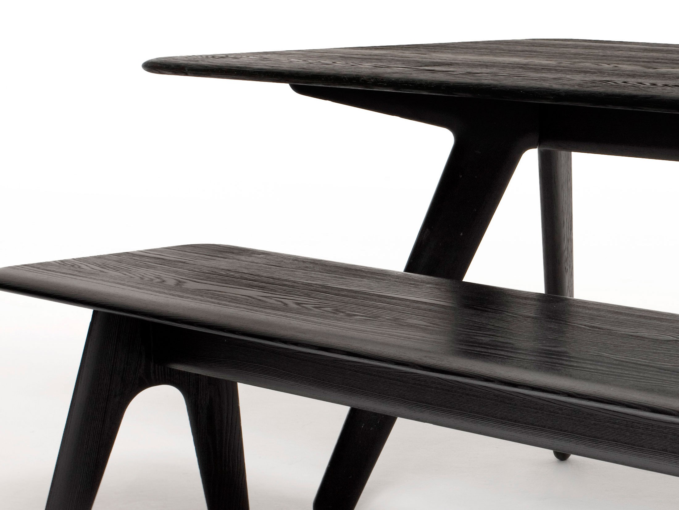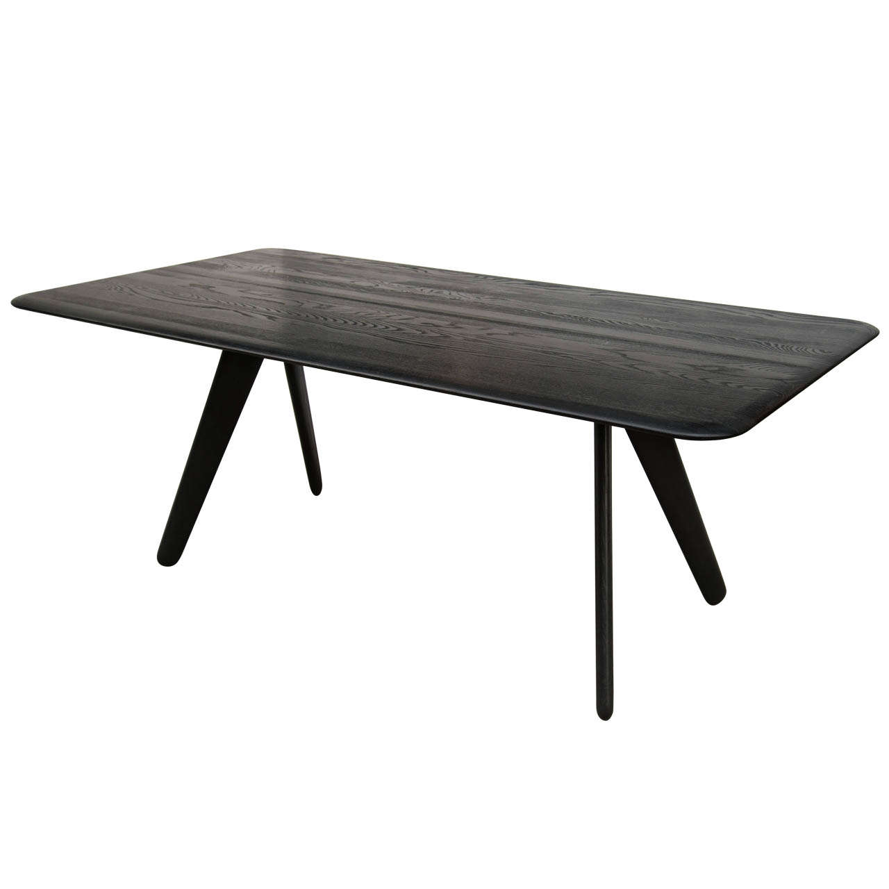 板形餐桌可使用自然漆或黑色漆完成。保留橡木的自然美,板坯收集是一系列以诱人的简洁的角度形式建造坚固的作品。表面被刷得很深,露出了颗粒。用黑色或天然漆完成。板坯收集包括一个酒吧凳子,椅子和桌子。